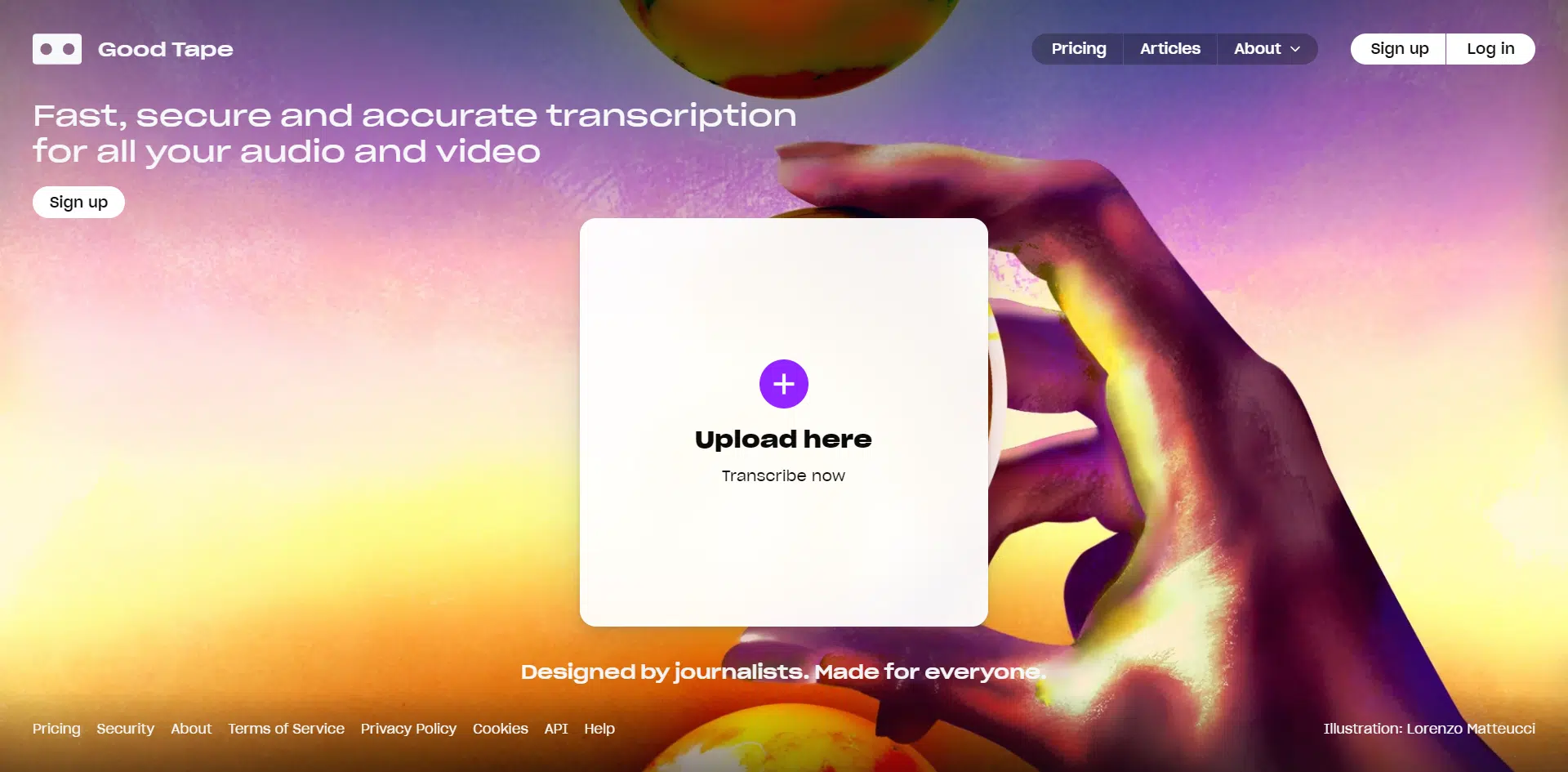 Good Tape is the ultimate solution for anyone needing quick and secure audio transcription. This online service allows you to effortlessly transcribe audio files up to 20 minutes long. With its automated speech recognition technology, Good Tape makes the process fast and efficient. You can simply upload your audio files, including formats like MP3, WAV, and M4A, and receive a transcript via email in just moments.