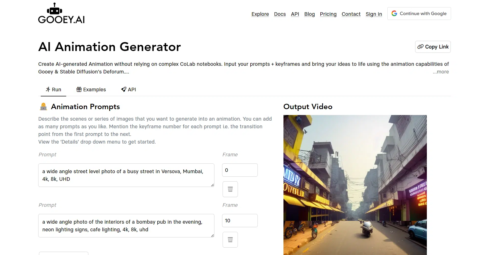 The process is straightforward: describe the scenes or series of images you want to animate, and specify keyframes to guide transitions between them. This intuitive system allows you to focus on your creativity, letting the AI handle the intricate details of animation. Whether you’re looking to create a captivating story or a professional presentation, Gooey AI provides the flexibility and power to make your concepts come alive.