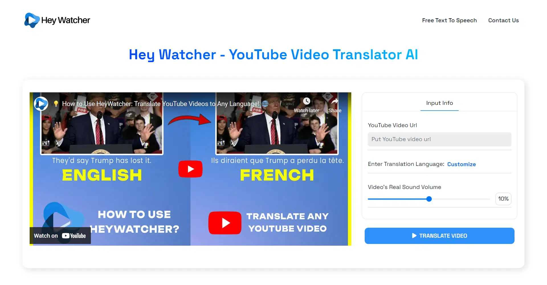 HeyWatcher is here to change the way you experience YouTube content by breaking down language barriers with its cutting-edge translation AI. Whether you’re diving into educational courses, enjoying podcasts, or exploring diverse video content, HeyWatcher makes it easy to watch and understand videos in any language. Simply provide a link, and the AI-powered translator will swiftly convert the video into your chosen language, allowing you to enjoy a seamless viewing experience without waiting or struggling with subtitles.