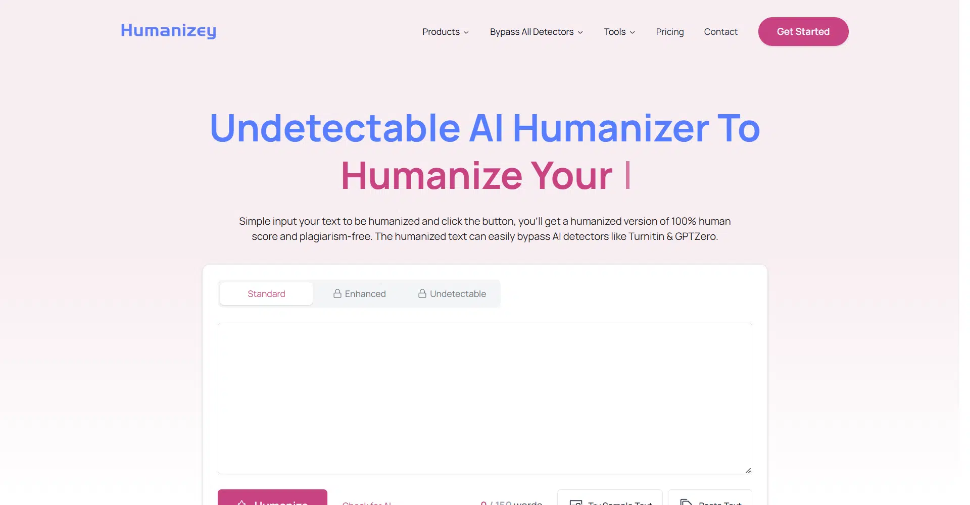 Humanizey is an AI-powered tool designed to humanize your text, ensuring it bypasses all AI detection systems. With just a simple input of your text, Humanizey provides a completely humanized version that scores 100% on human detection, making it plagiarism-free and undetectable by AI detectors like Turnitin, GPTZero, ZeroGPT, and others.