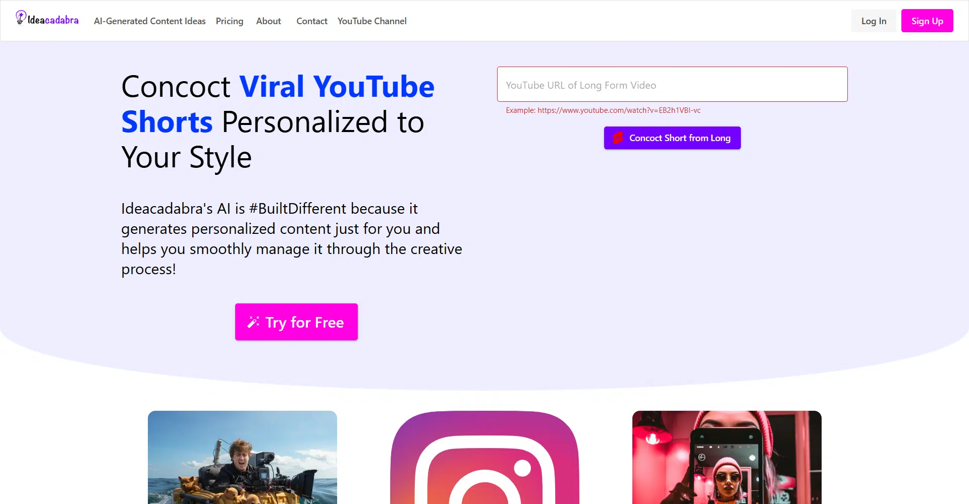 IdeaCadabra is your personal creative wizard for YouTube Shorts and viral social content. It’s powered by cutting-edge AI that studies your past content and your audience’s preferences to create hyper-personalized video ideas. Think of it like having your own smart creative partner that knows what your followers want—even before they do.