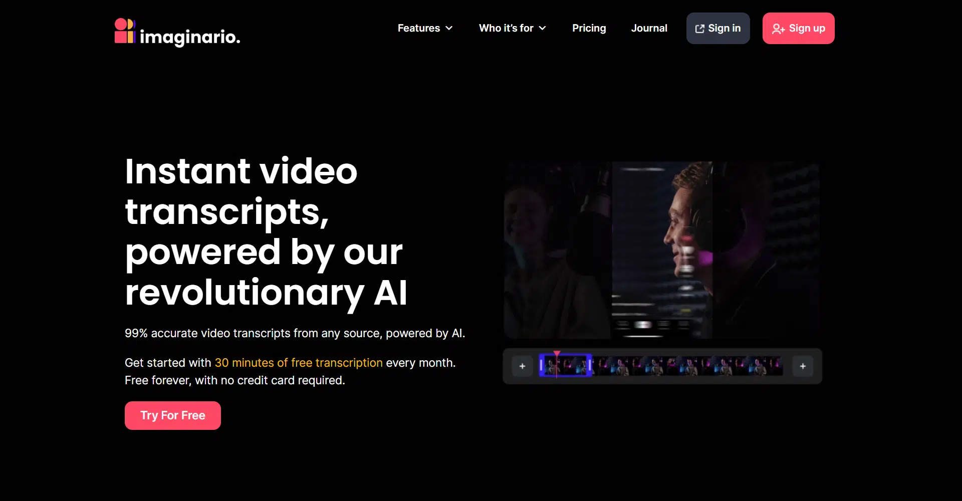 Users can sign up at Imaginario with its free plan. Users receive 30 minutes of free transcription every month, making it easy to get started without financial barriers.