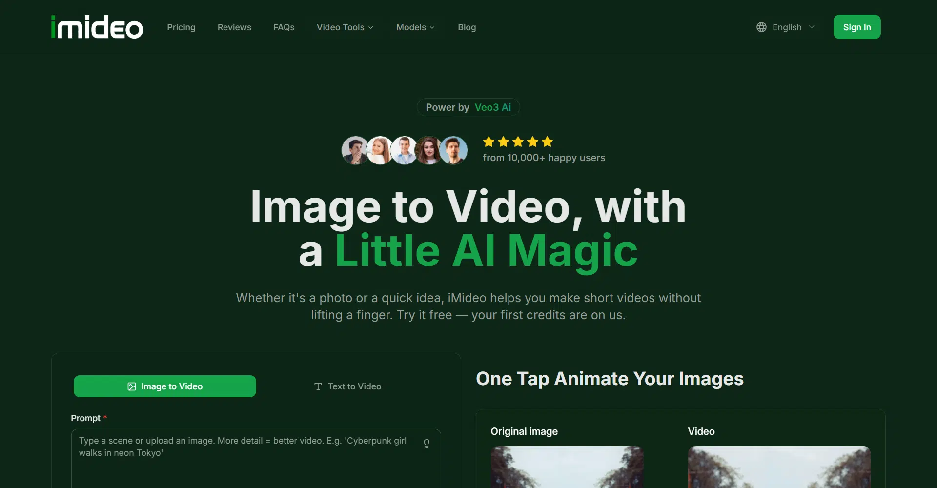 Imedio is a powerful all-in-one AI video platform that makes creating professional videos fast, easy, and accessible for everyone. With multiple AI models at your fingertips, you can generate videos from text, images, other videos, or even extend existing footage effortlessly. Its intuitive interface allows you to turn words into cinematic videos, animate still images, and blend multiple images into unique video scenes, giving creators endless possibilities for marketing, storytelling, and creative projects.