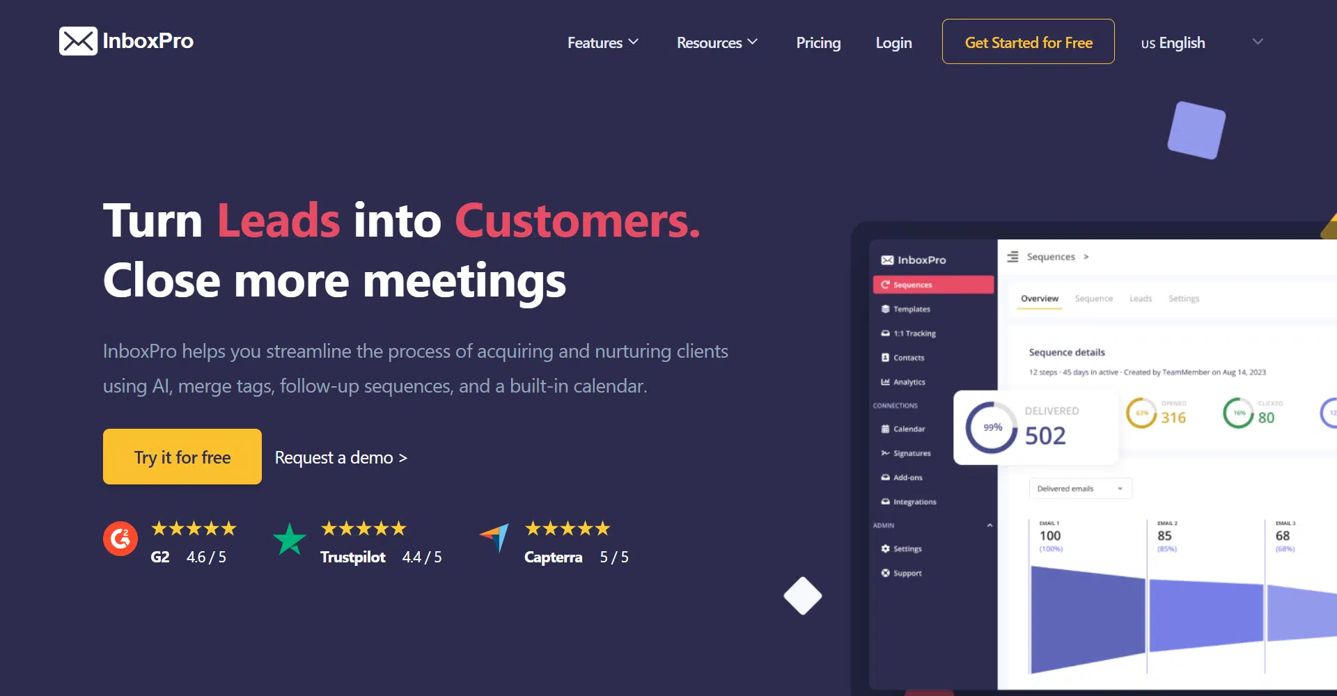 Inbox Pro is a smart platform designed to help you turn leads into customers faster with AI-powered email automation. It simplifies the entire sales process by combining AI email generation, follow-up sequences, and a built-in calendar, so you can manage everything in one place. Instead of juggling multiple tools, you can run your entire sales funnel smoothly and focus on closing deals.