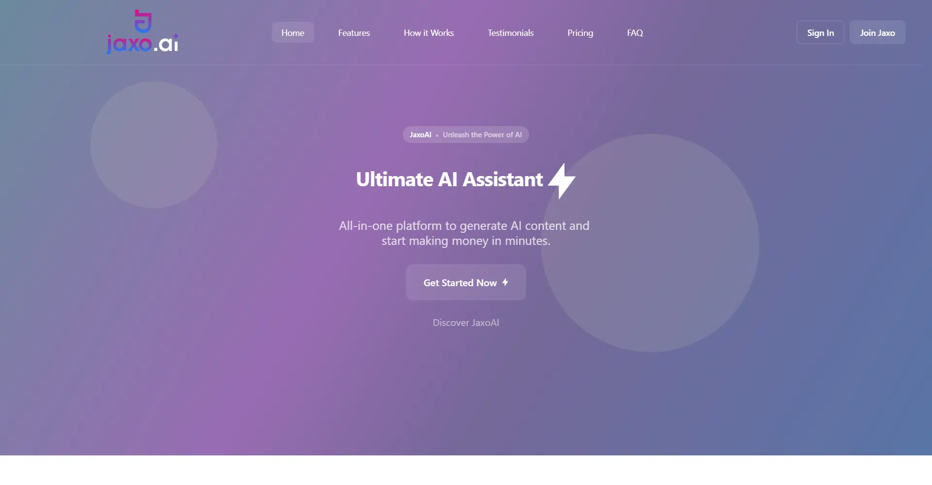 Jaxo AI is your all-in-one AI-powered platform designed to help you create content, save time, and start making money in just minutes. Whether you’re a blogger, marketer, developer, or entrepreneur, Jaxo AI brings together powerful tools to supercharge your productivity and creativity.