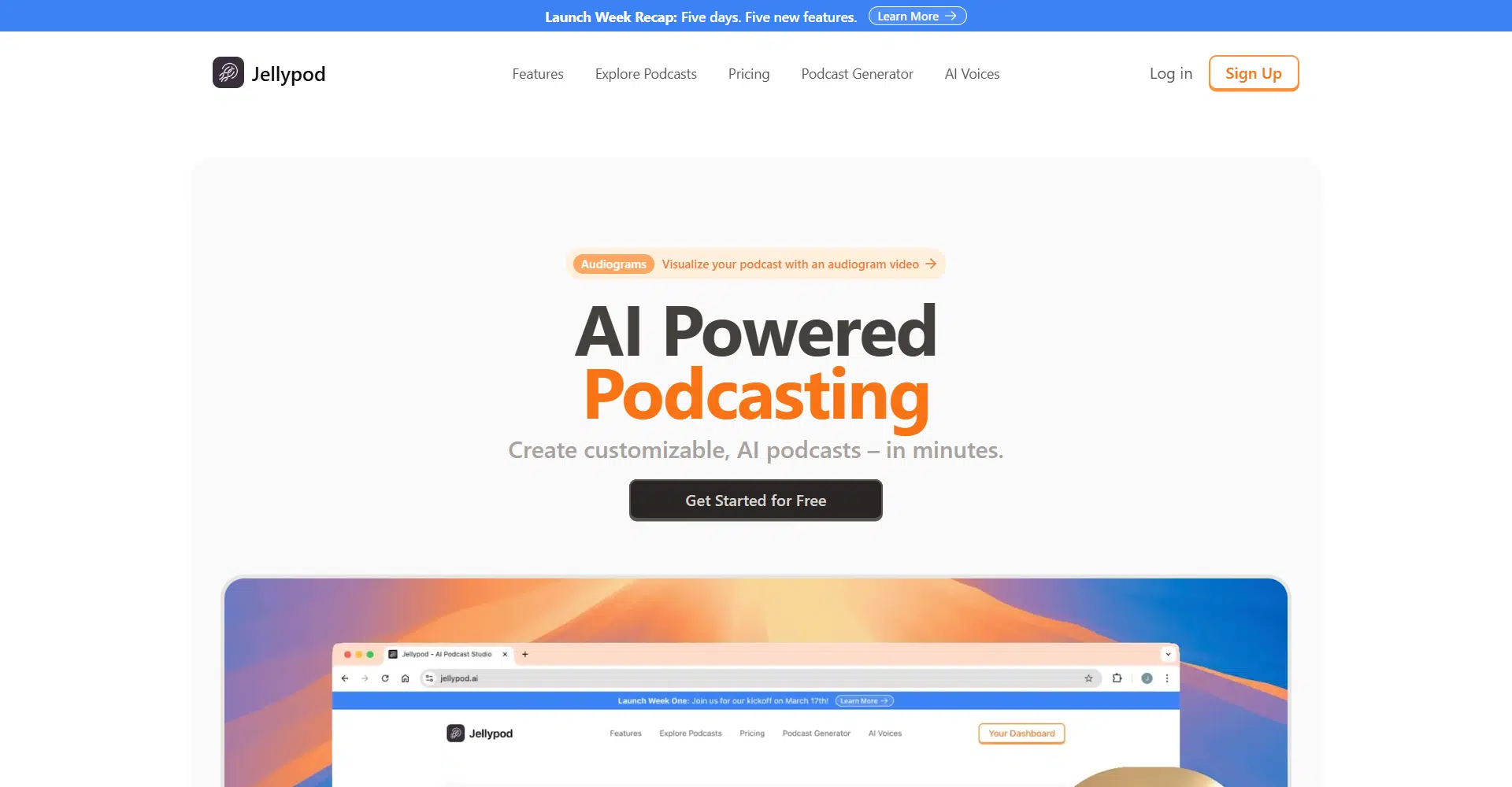 JellyPod is the AI-powered podcasting studio that makes creating, editing, and publishing high-quality podcasts easier than ever. In just minutes, you can build an entire podcast from scratch — from scripting to final audio — using cutting-edge AI technology.