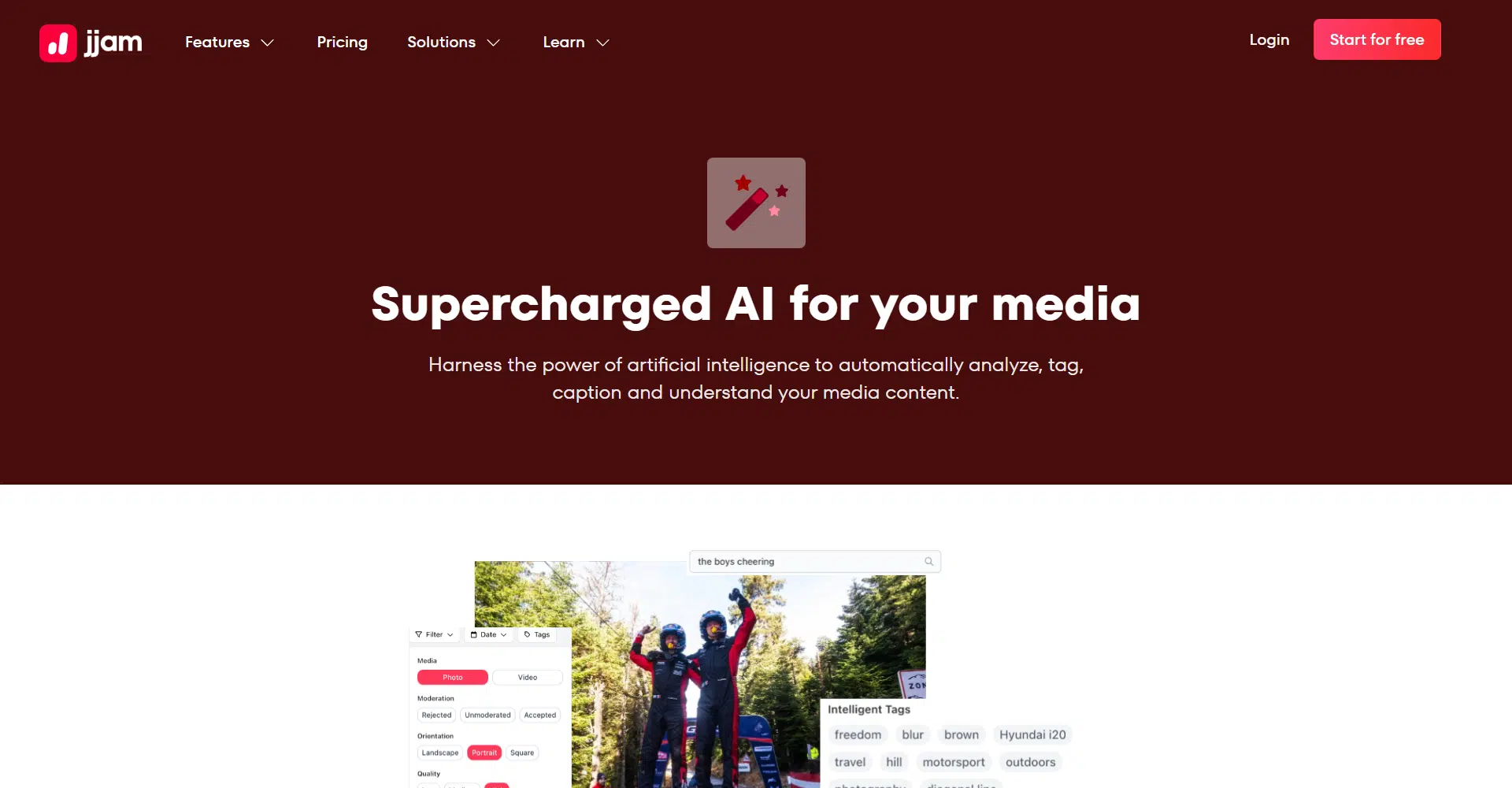 JJAM is a powerful AI tool designed to make managing your media content easier and smarter. It uses advanced artificial intelligence to automatically analyze and understand your photos, videos, and audio files. With JJAM, you can save a lot of time by letting the AI do the hard work for you. It automatically adds company context to your media, so everything stays relevant and organized. It also offers smart auto-tagging, tagging your content with the right keywords and categories, helping you find and use your files quickly.