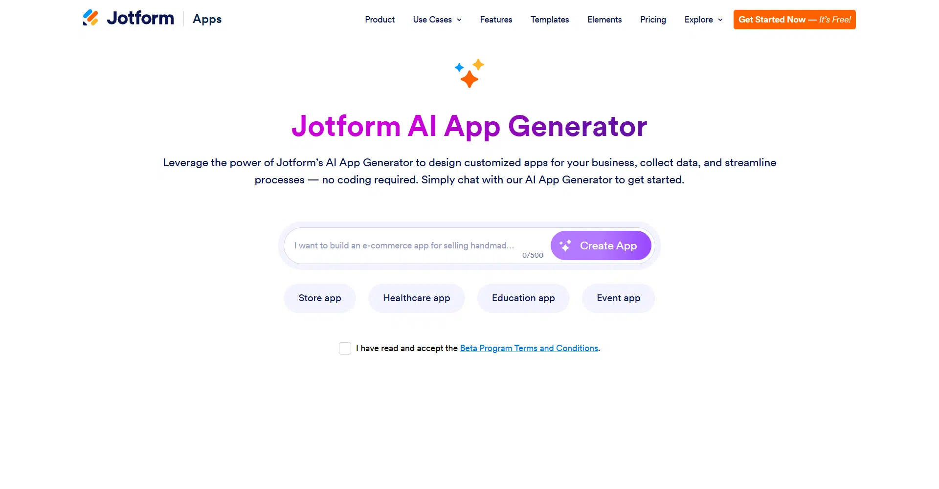 And the best part? On the free plan, you’ll enjoy access to unlimited apps, 100 monthly submissions, and additional features to help you get started. Jotform’s AI App Generator is the perfect solution to innovate and optimize your business processes with ease.