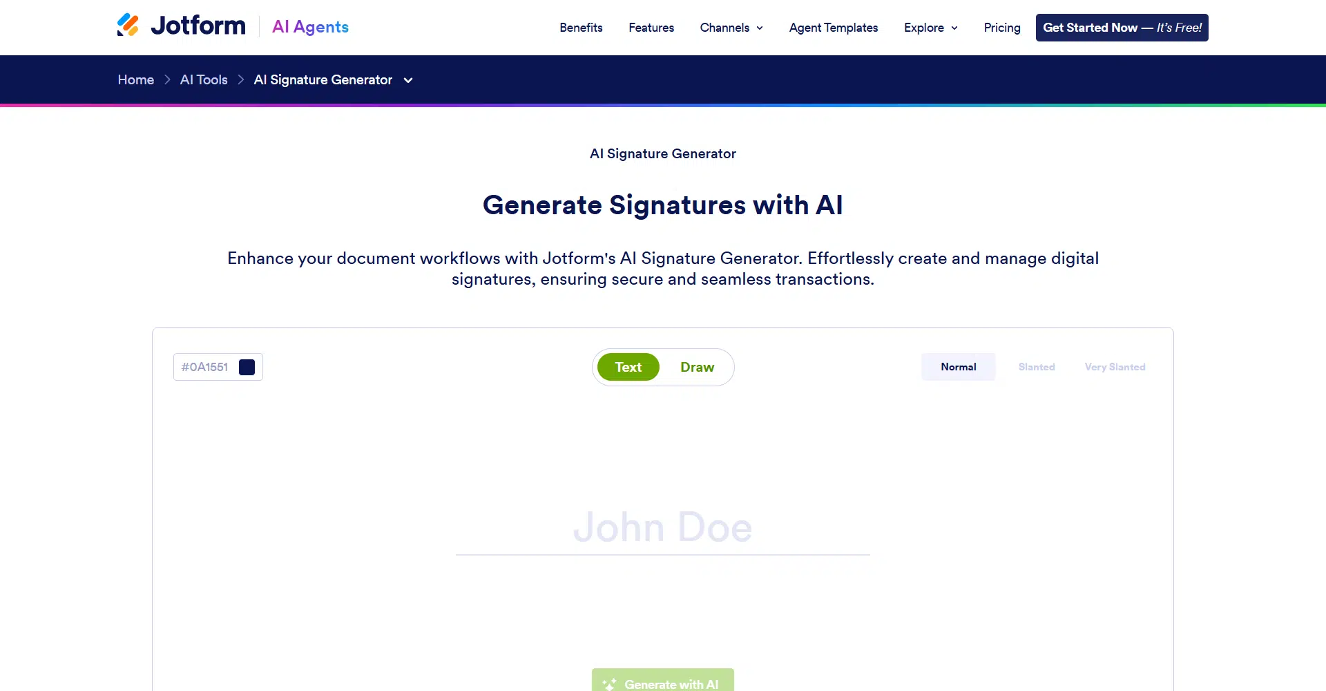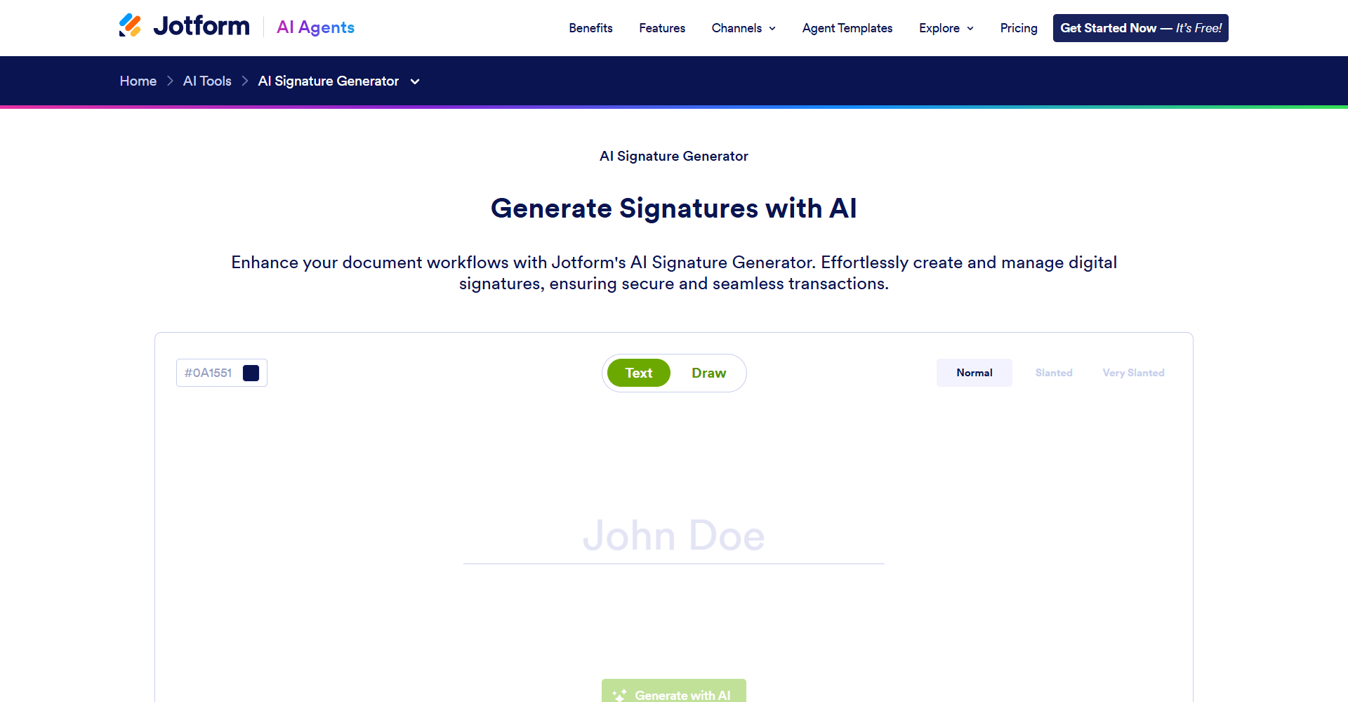 Main FeaturesAI Signature Generation, Style Variations & Regeneration, PNG Signature Download, Integration with Jotform Sign
