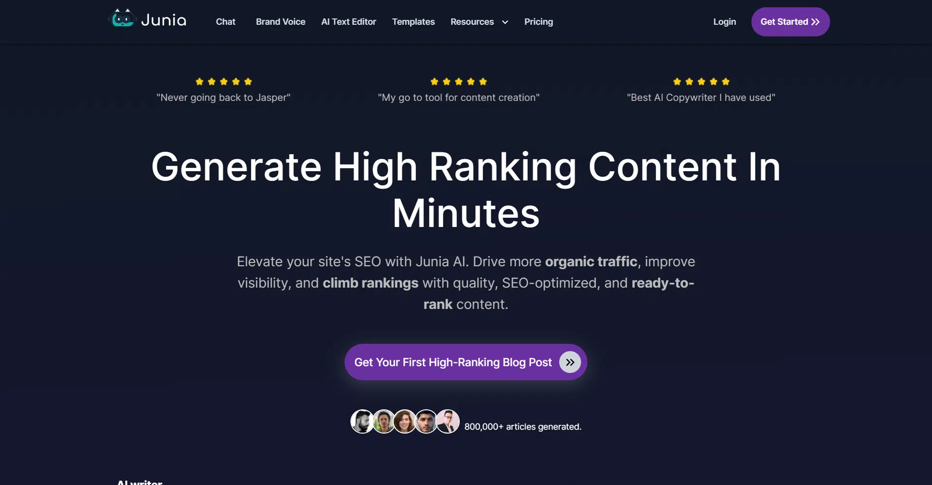 Unleash the power of Junia AI and revolutionize your content creation journey! Elevate your site’s SEO effortlessly with our cutting-edge tool, designed to drive organic traffic, improve visibility, and secure top rankings. With over 800,000 articles already generated, Junia AI is your go-to solution for quality, SEO-optimized, and ready-to-rank content.