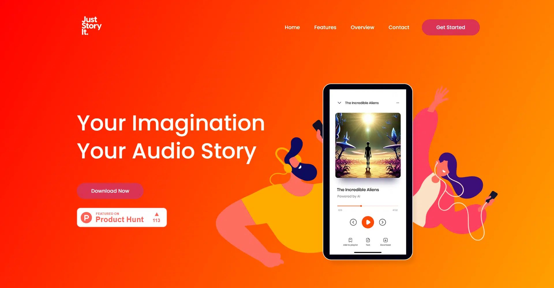 Just Story It is the perfect AI-powered platform for creating and enjoying personalized audio stories. With Just Story It, your imagination is the only limit. You can create characters, choose environments, pick your genre, set the duration, and add custom inputs to shape a story exactly how you envision it. Whether it’s a thrilling adventure, a calming tale, or a creative journey, Just Story It brings your stories to life.