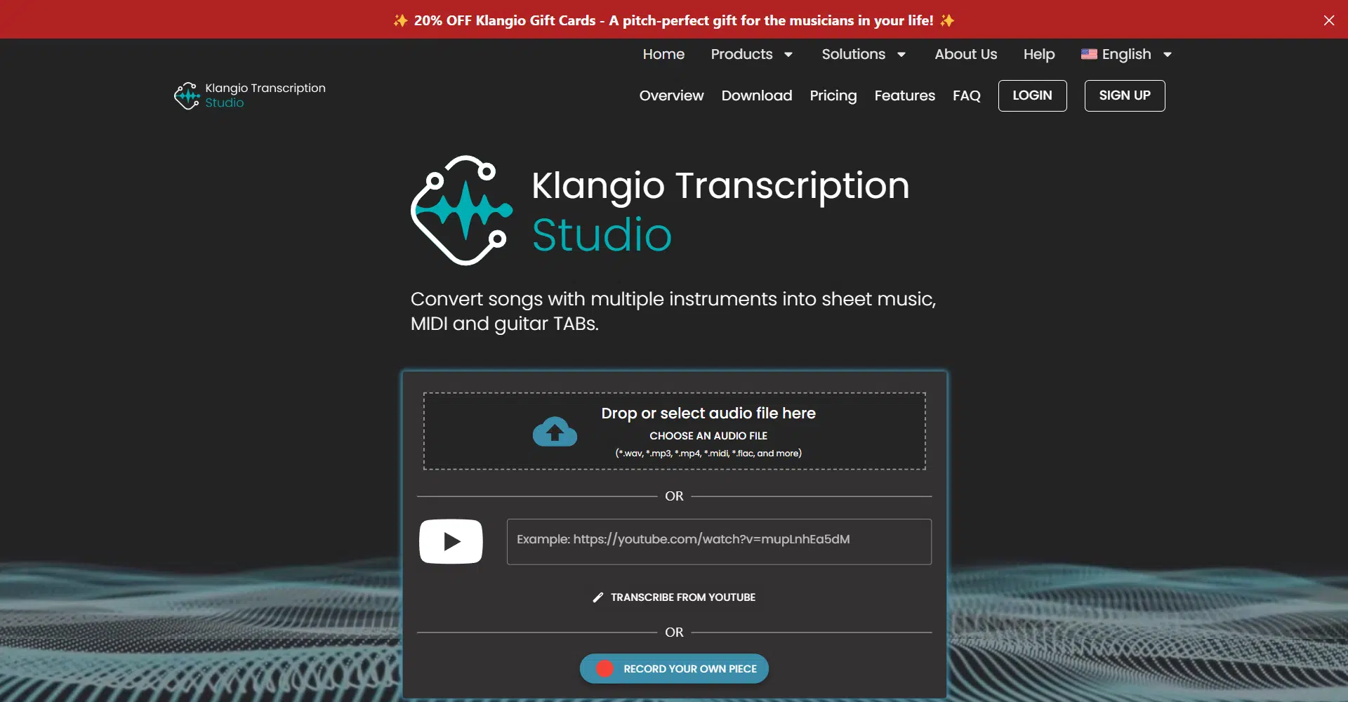 Klangio Transcription Studio is an innovative tool that brings your favorite music to life as sheet music, MIDI files, and guitar TABs. Whether you’re a musician, composer, or just passionate about music, this platform makes it incredibly simple to transform songs into notes. With the ability to process tracks featuring multiple instruments, Klangio accurately identifies the notes played by each instrument simultaneously, ensuring a rich and detailed transcription.