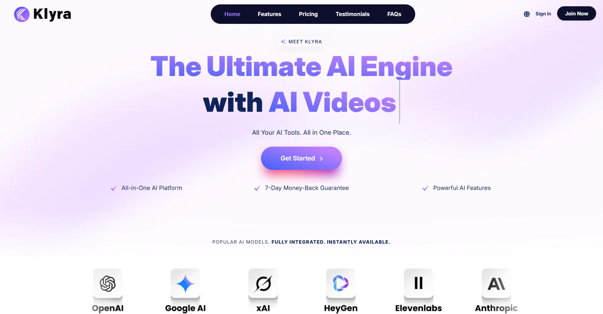 Klyra AI is your all-in-one creative powerhouse—make videos, music, voices, avatars, images, and more with just a few clicks. Create without limits!