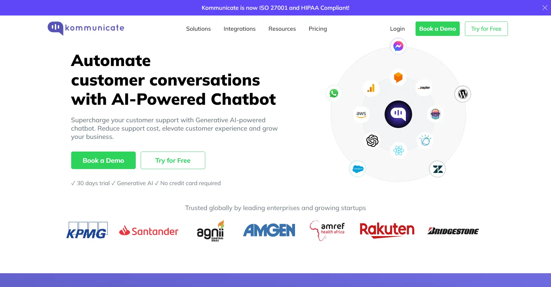 But here’s the game-changer: a free 30-day trial with Generative AI, offering a hands-on experience without the need for credit card information. Dive into the future of customer support, automate over 80% of your interactions, and watch your business thrive with Kommunicate.