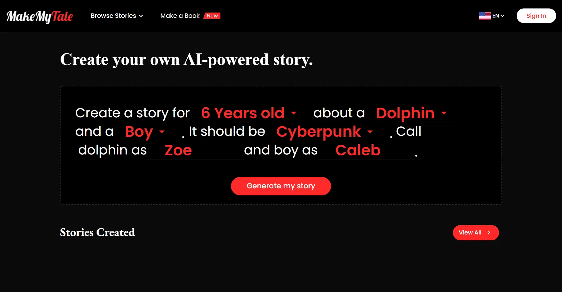 MakeMyTale is a revolutionary platform that brings the magic of personalized storytelling to life. Designed to create customized children’s books, it offers a unique way to engage young minds while nurturing their love for reading. With MakeMyTale, you can craft stories that resonate with your child by adjusting the characters, plot, and setting to fit their preferences, making every adventure uniquely theirs. This tool empowers parents to create bespoke books that are both entertaining and educational, providing a deeper connection to the stories they read.