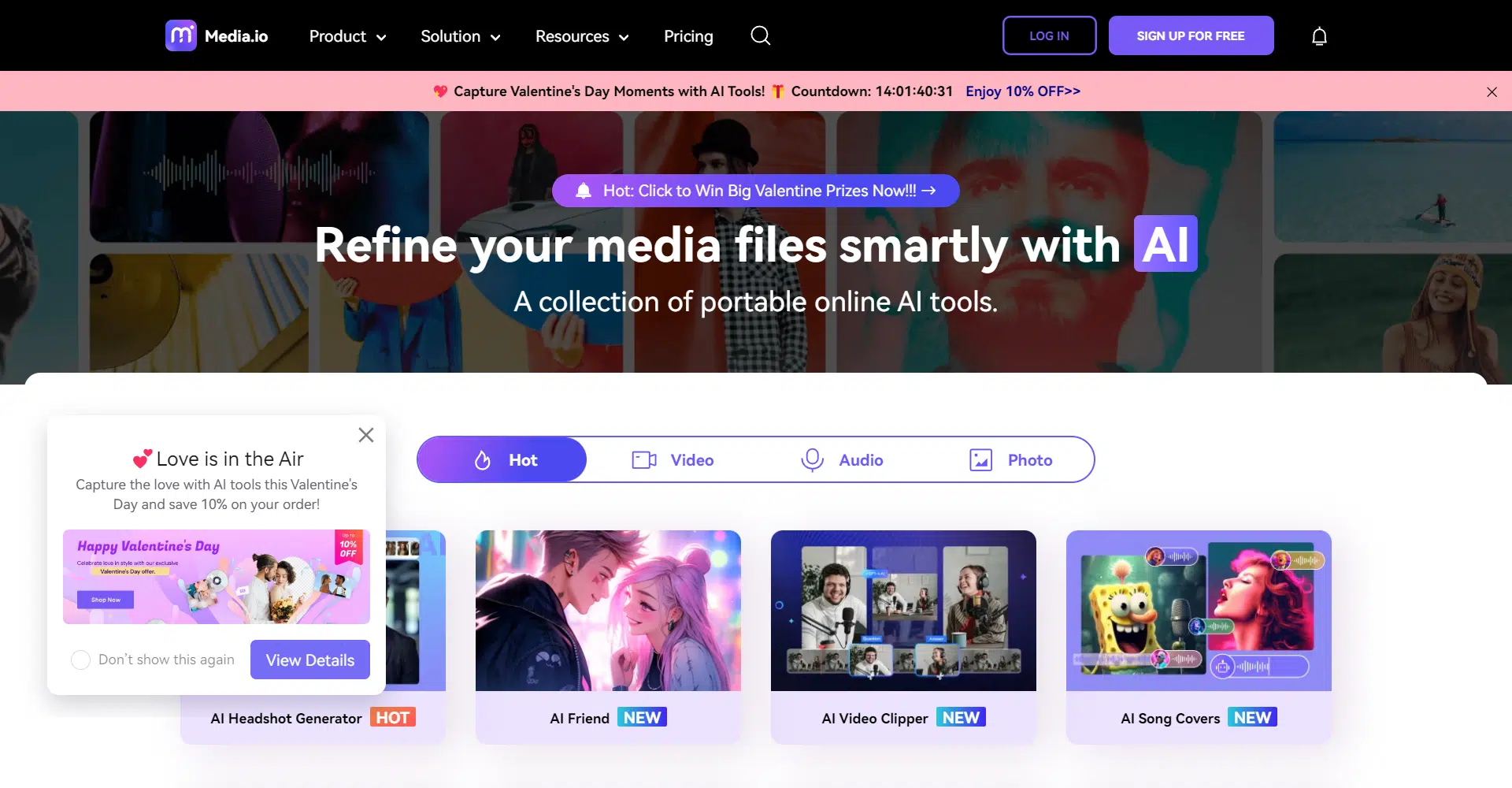 Explore hot features such as the AI Headshot Generator, transforming ordinary photos into professional headshots, or engaging in powerful online chat with the new AI Friend. Clip lengthy videos into viral sensations with the AI Video Clipper, and create captivating AI song covers.