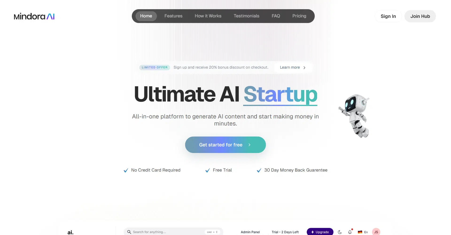 Mindora AI is your all-in-one AI companion, built to help you create, refine, and monetize content effortlessly. Whether you’re a student, marketer, educator, or startup, Mindora gives you the tools you need to generate high-quality content and start making money within minutes. From cold emails to newsletters, workout plans to vacation guides, this platform can do it all.