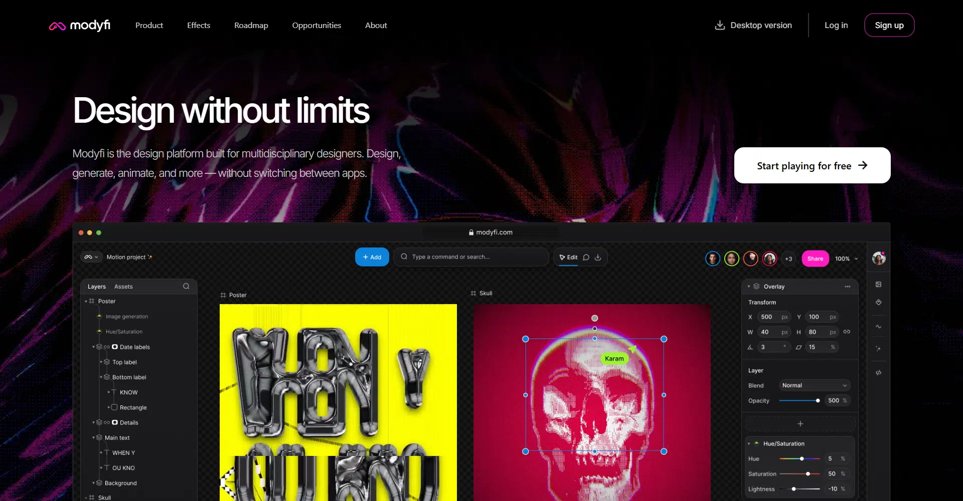 Modyfi is a powerful design platform built for multidisciplinary creators who want to design, generate, animate, and more — all without switching between multiple apps. It offers a seamless experience where creativity meets productivity, allowing you to bring your ideas to life faster and easier than ever.