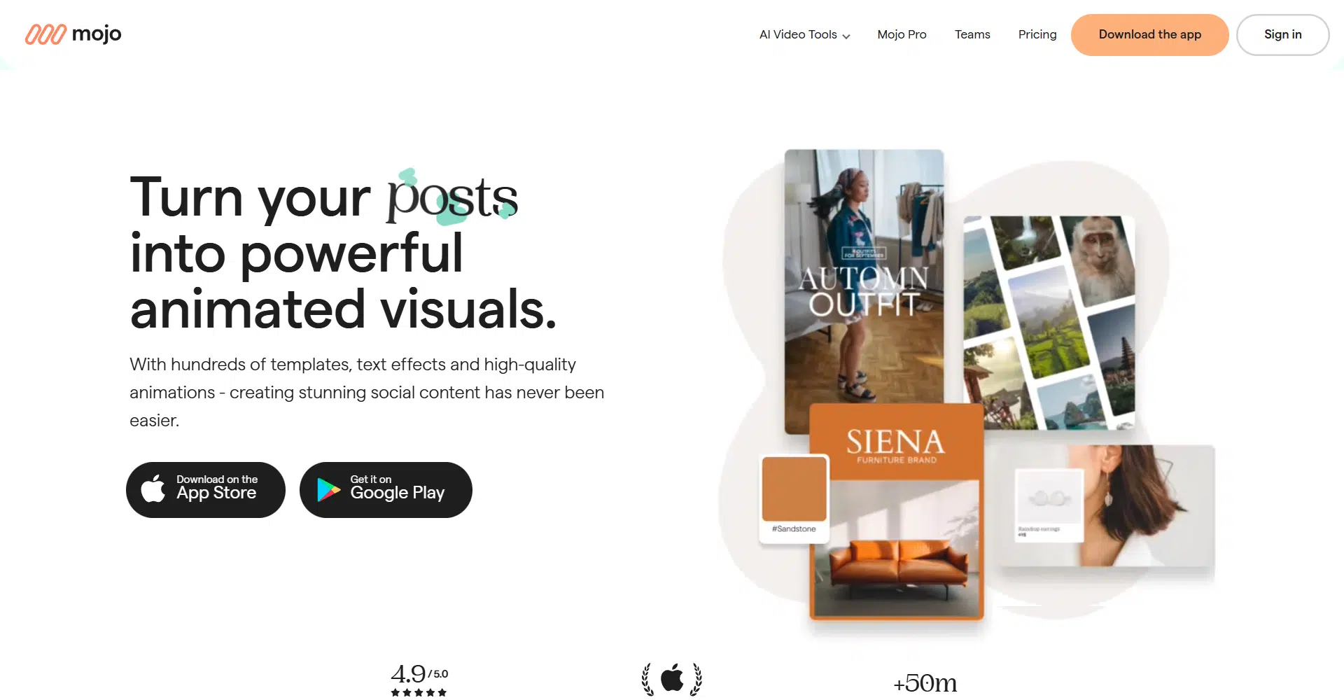 Mojo is your ultimate companion for transforming ideas and posts into powerful animated visuals. With its vast selection of templates, text effects, and high-quality animations, creating stunning social content is effortless and enjoyable. Whether you’re looking to grow your business or enhance your brand, Mojo equips you with the tools to stand out in the digital landscape.