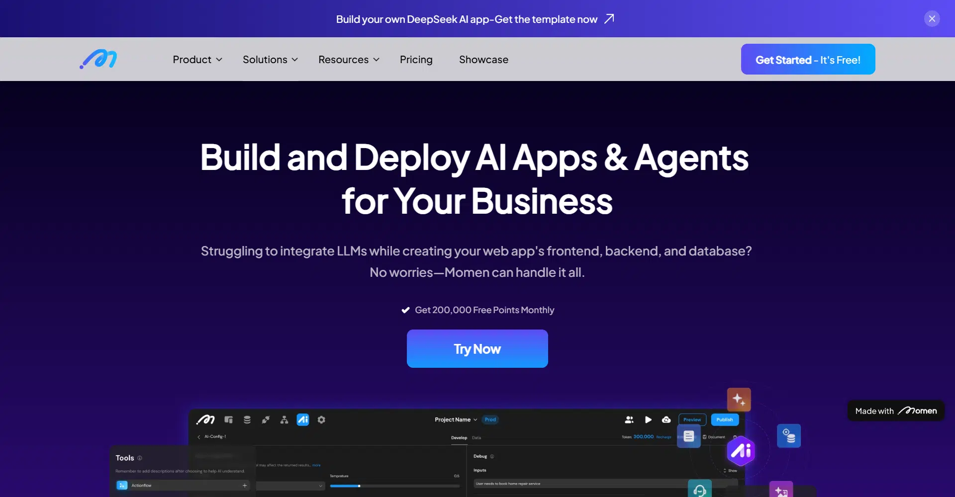 And the best part? Momen’s free plan gives you unlimited apps, one AI customization/API/actionflow, and the ability to publish to the web—everything you need to start building powerful AI applications without limits.