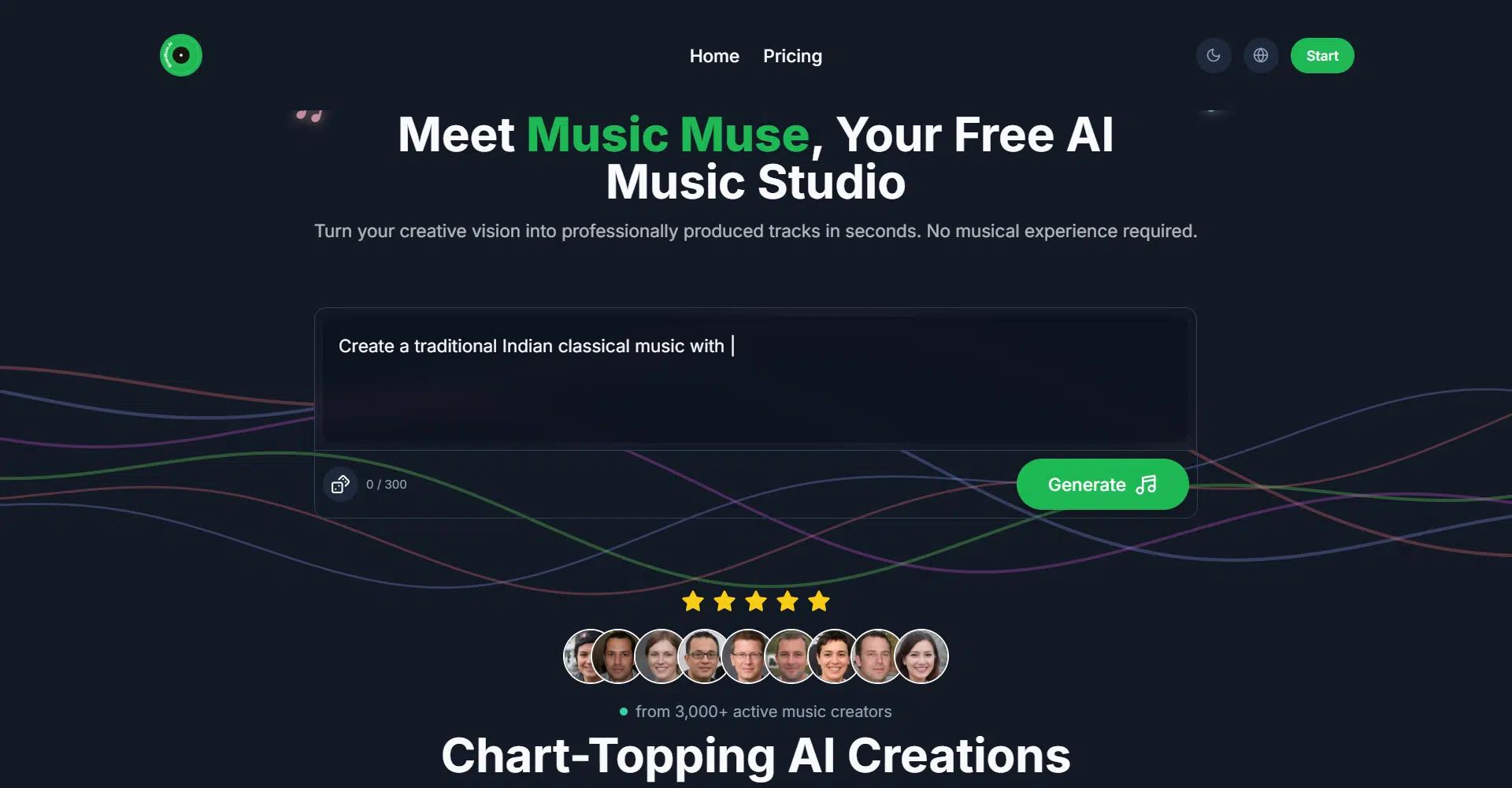 MusicMuse AI is your all-in-one AI music studio, built to transform your creative vision into fully produced, professional-quality tracks in seconds—no musical training required. Whether you want a chill lo-fi beat, a dance anthem, or an epic cinematic score, MusicMuse AI makes music creation as simple as describing your idea.