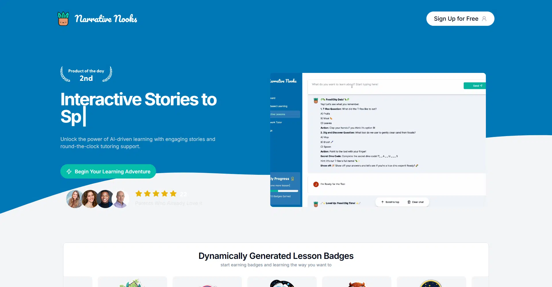 What sets Narrative Nooks apart is its 24/7 on-call tutoring support, dynamic badge system, and personalized learning paths that grow with your child. Parents love how the platform encourages independent learning while offering real-time help when needed. Students can dive into custom storylines, interact with lessons at their own pace, and earn achievement badges as they unlock new topics.