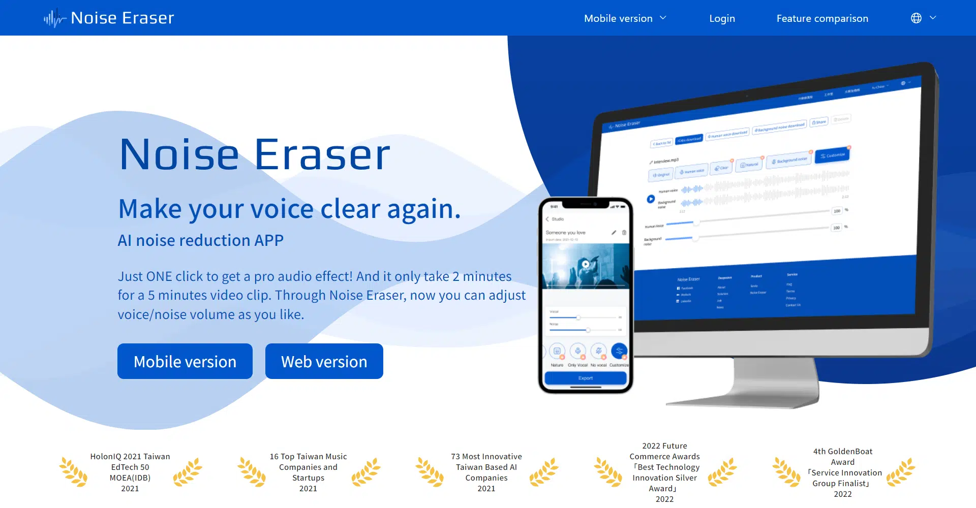 And the best part? You can get started today with a 7 day free trial. You can easily adjust the voice and noise ratio with the help of AI, and see how much better your videos can sound with Noise Eraser.