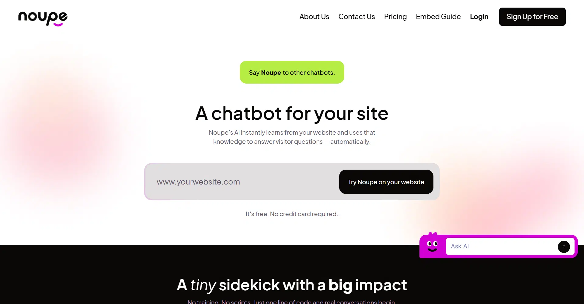 And the best part? On the free plan, you can instantly generate and launch a fully functional AI chatbot, complete with learning from your own website. No credit card required. Just plug in your site and let Noupe handle the rest.