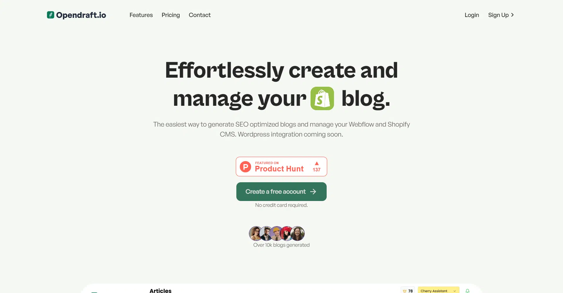 OpenDraft is your go-to solution for effortlessly creating and managing blogs. It’s perfect for busy founders, SEO agencies, marketers, and bloggers. With OpenDraft, you can quickly write SEO-optimized articles using powerful AI. Just give it a topic or keyword, and it’ll generate a full-length article for you. Plus, you can target specific SEO keywords and handle multiple keywords at once.