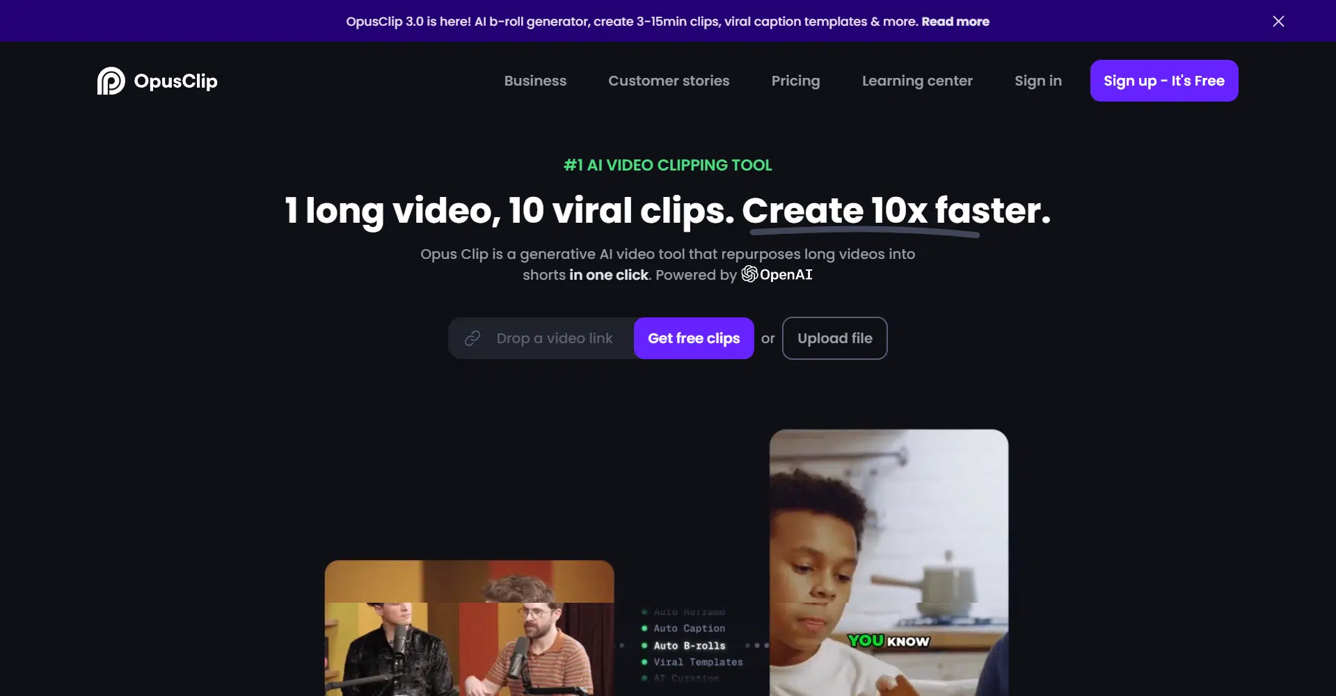 Introducing Opus Clip, the revolutionary AI video clipping tool that transforms your lengthy videos into 10 viral clips with just one click, making the process 10 times faster! With Opus Clip, content creation becomes a breeze, as it supports video links from popular platforms like YouTube, Zoom, Vimeo, Rumble, and StreamYard, while offering multilingual support in English, German, Spanish, French, Portuguese, and 20 more languages.