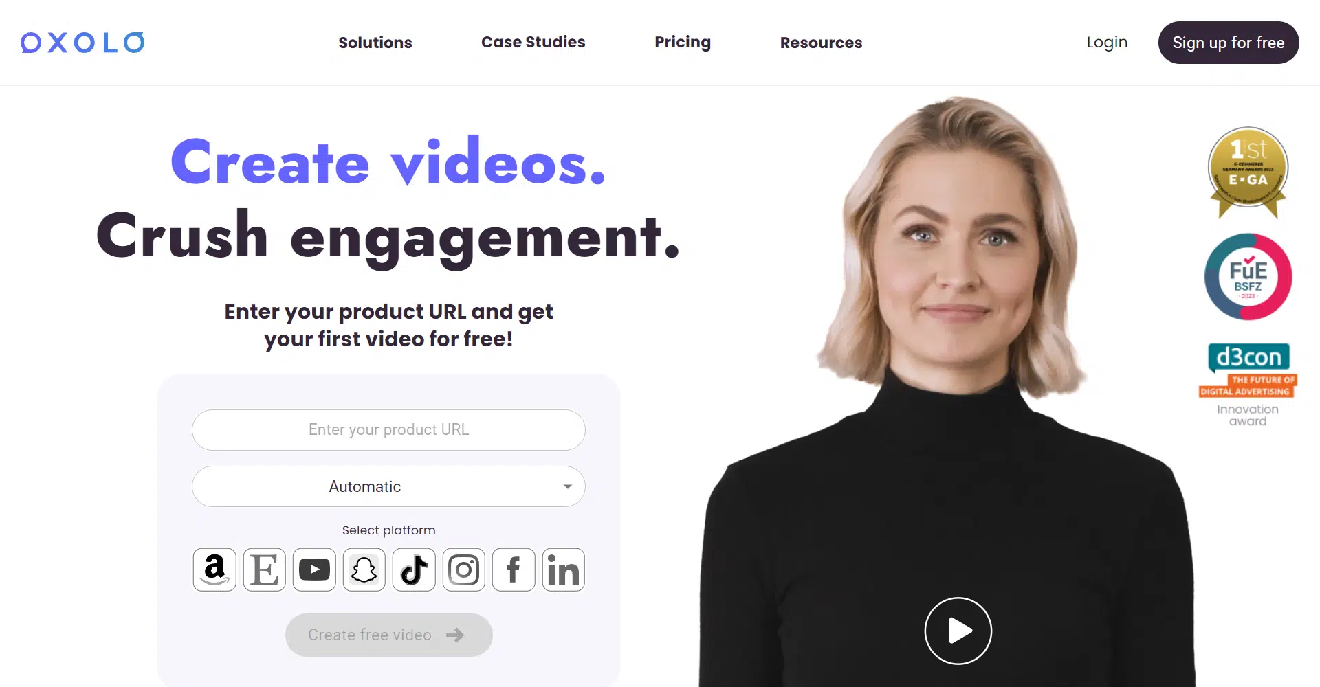 Seamlessly integrate into top marketplaces like Amazon, Etsy, and Alibaba, expanding your reach across Google, Instagram, TikTok, and more! Witness your videos evolve with Oxolo’s adaptive AI, creating optimized content in minutes that captivates your audience and drives conversions.