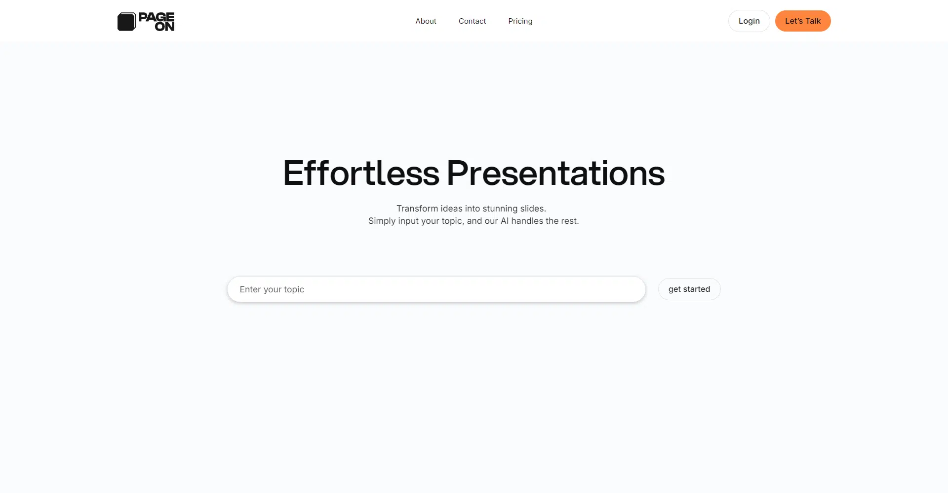 PageOn revolutionizes the way you create presentations, turning your ideas into stunning slides effortlessly. Just input your topic, and let their advanced AI do the heavy lifting. PageOn is designed for knowledge creators and self-media professionals looking to tell their stories with impact and ease.