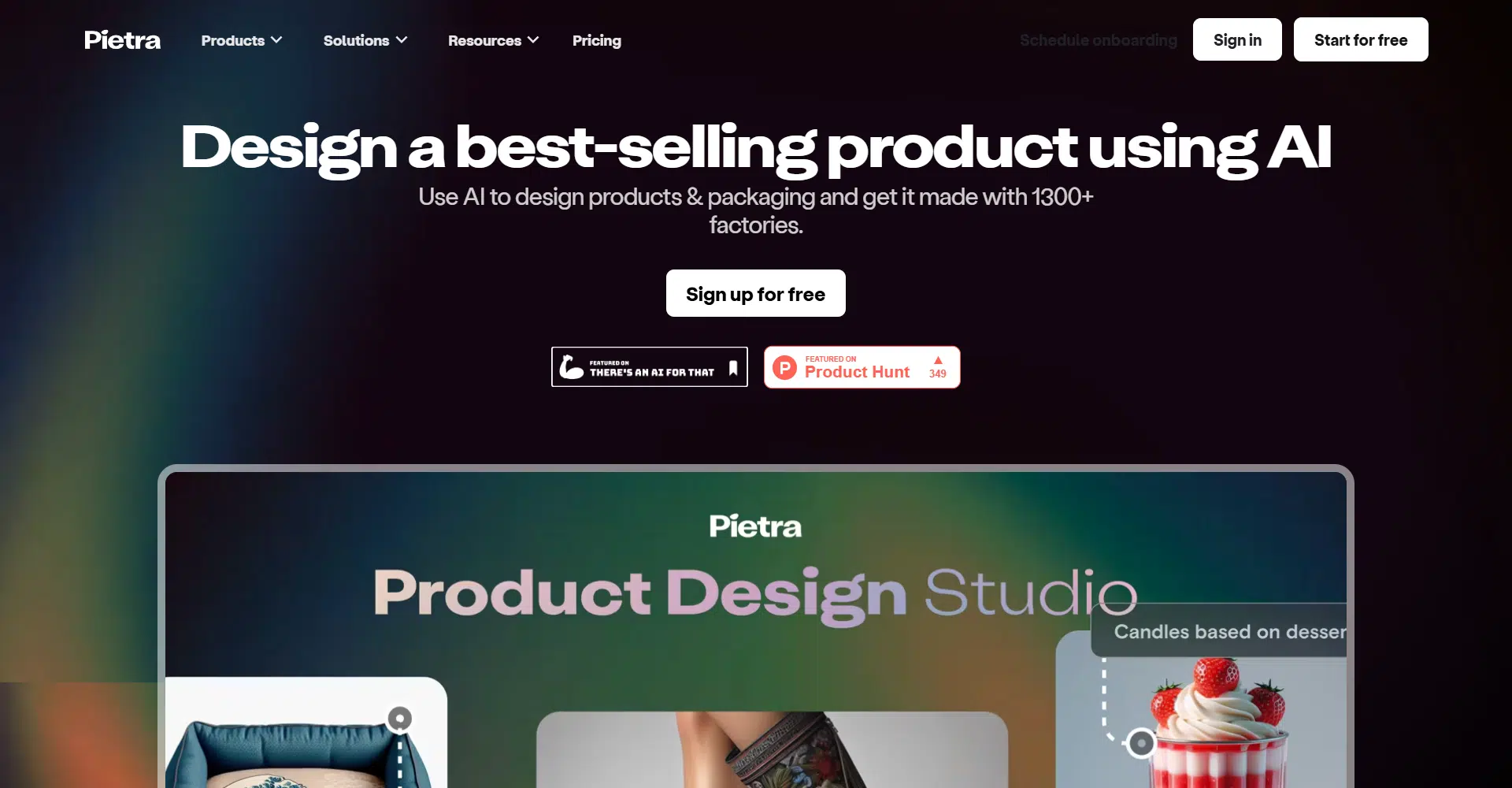 Pietra is an AI-powered product design platform that helps creators and brands design products and packaging quickly and efficiently, and then connect with over 1,300 factories to bring them to life. With Pietra, you can turn ideas into market-ready designs using AI, whether starting from sketches, reference images, or prompts. The platform is ideal for anyone looking to accelerate product ideation, streamline collaboration, and simplify manufacturing.