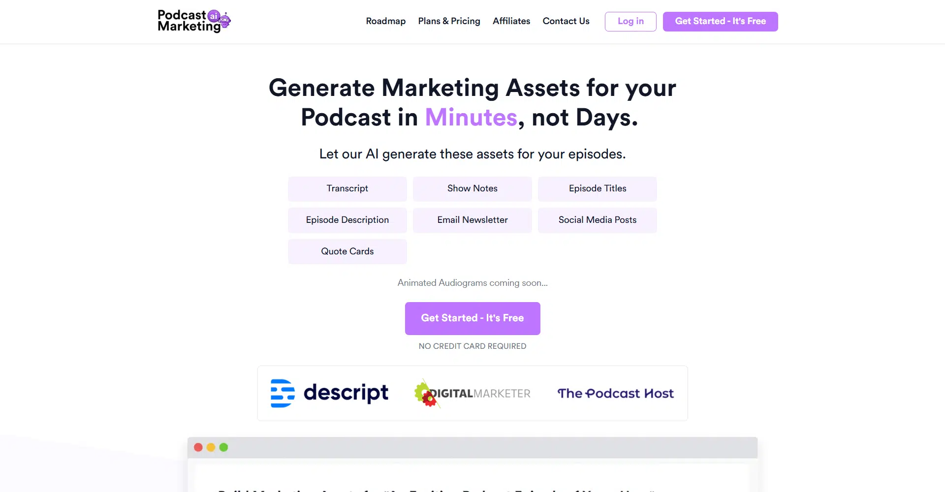 And the best part? On a free plan, you can get 1 credit to generate these marketing assets, allowing you to test the platform’s powerful capabilities for your podcast’s promotion.