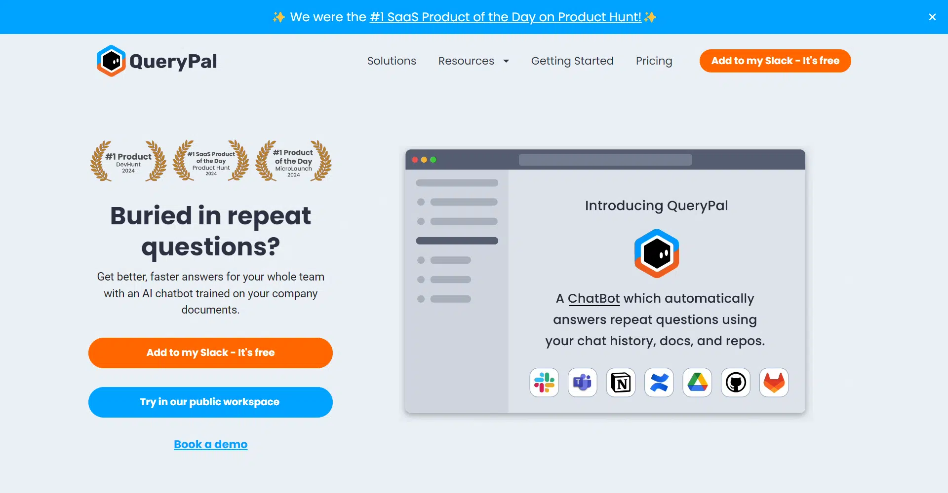 You can start exploring QueryPal with their free plan, which includes unlimited queries, a workspace for up to 50 users, and essential integrations with MS Teams and Slack. Give QueryPal a try today, and see how it transforms your team’s efficiency with instant, secure answers tailored to your needs. It’s not just a chatbo, it’s your team’s new AI-powered co-pilot!