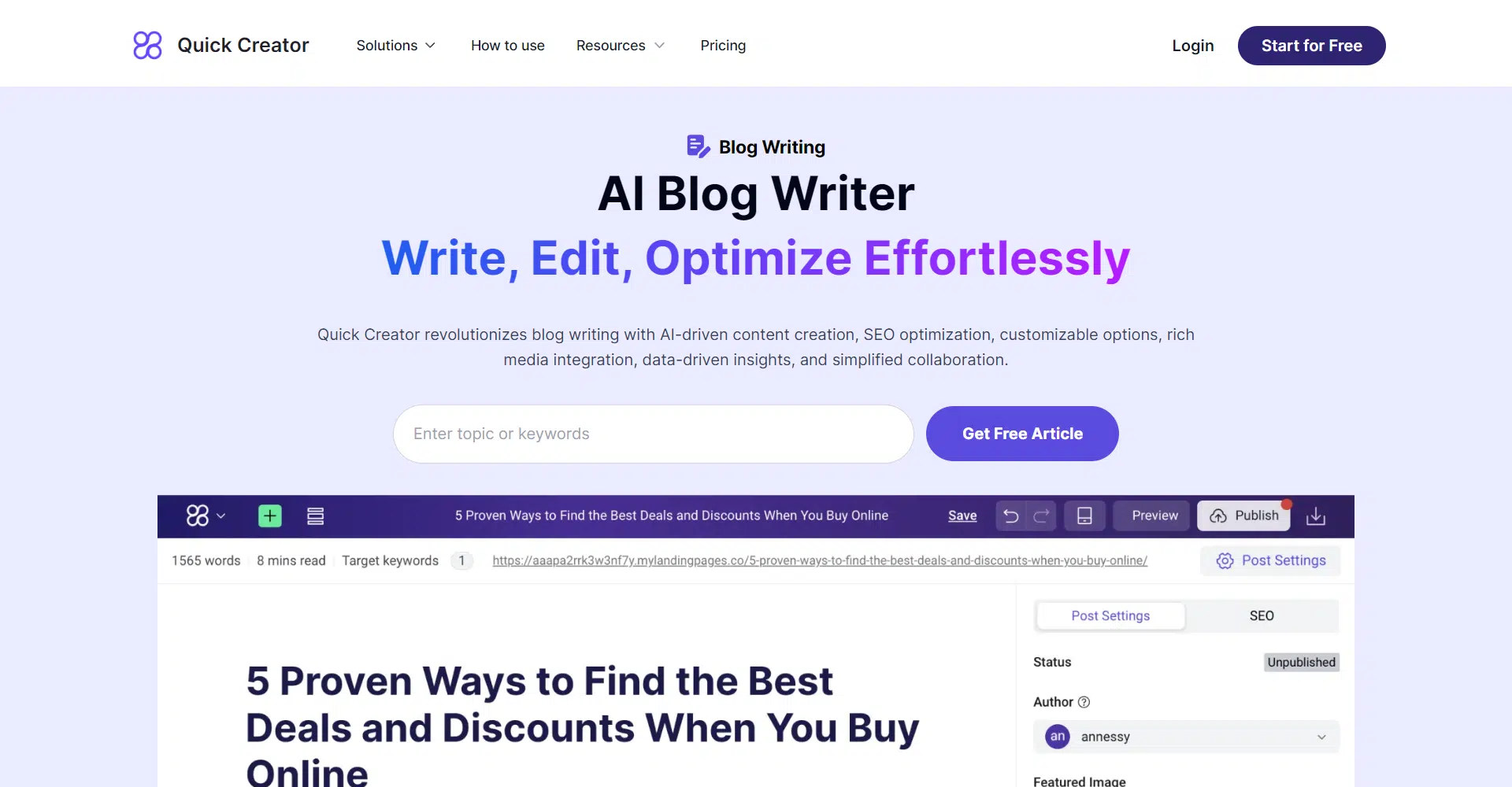 Discover the seamless world of content creation with Quick Creator, where they revolutionize the process with their AI Blog Writer. Quick Creator empowers users of all skill levels to effortlessly write, edit, and optimize blog content. With Quick Creator, there’s no need to struggle through the intricacies of crafting engaging articles.Thanks to their AI-driven capabilities, content creation has become a smooth and enjoyable experience for its users.