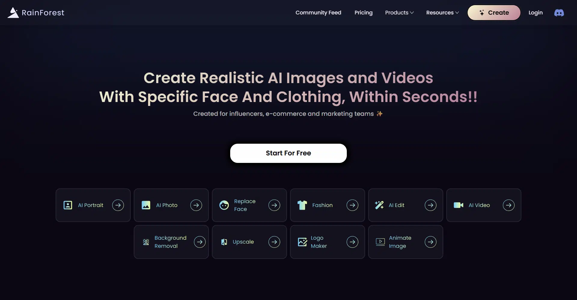 Create ultra-realistic AI images and videos with custom faces and outfits in seconds—Rainforest brings your imagination to life, fast and easy!