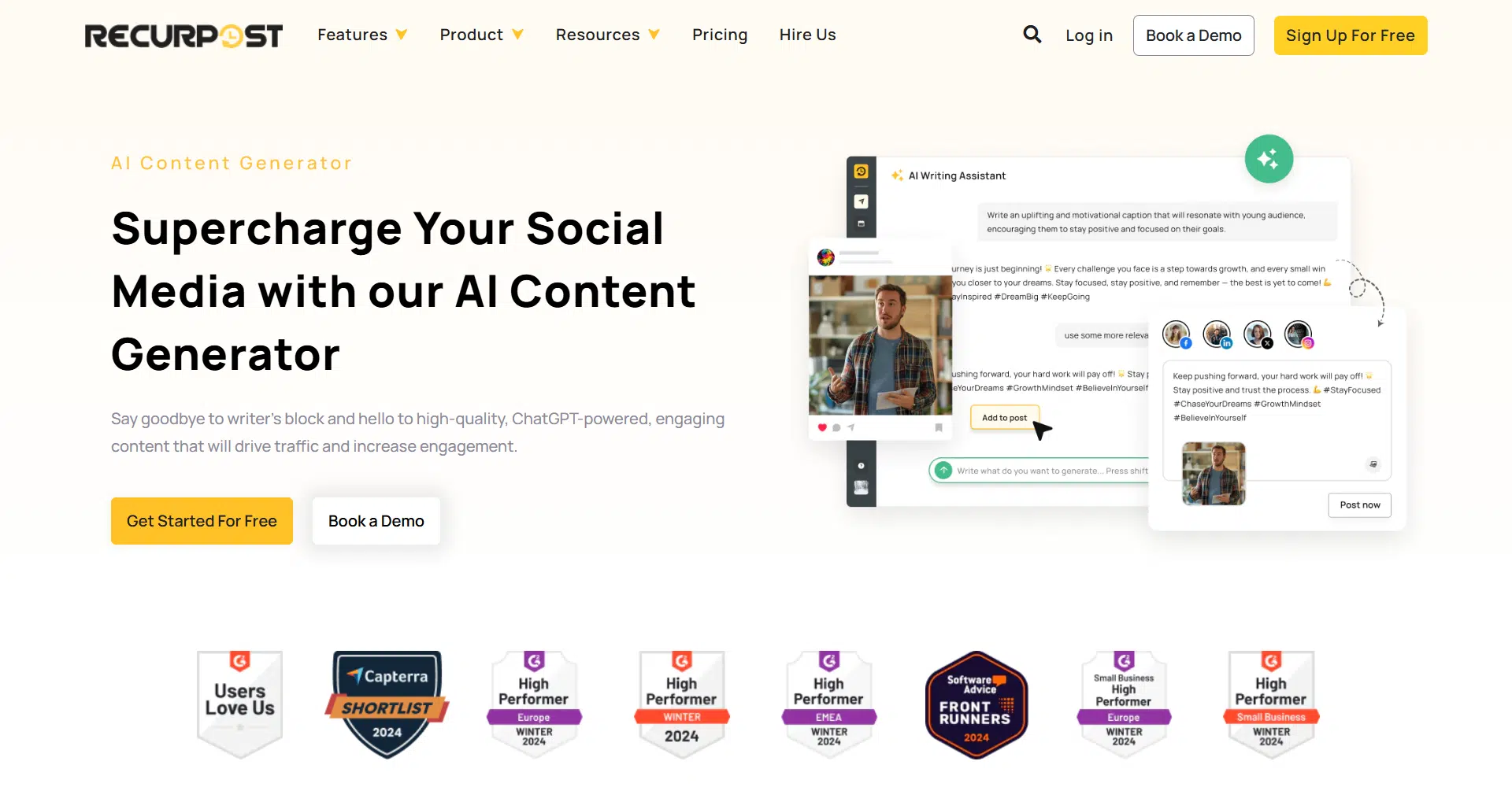 RecurPost is an AI-powered content generator that makes social media marketing effortless and fun. If you’ve ever struggled with what to post or how to make your content stand out, RecurPost is your new best friend. It uses smart AI technology to help you write engaging, high-quality content that can boost traffic and spark real engagement.