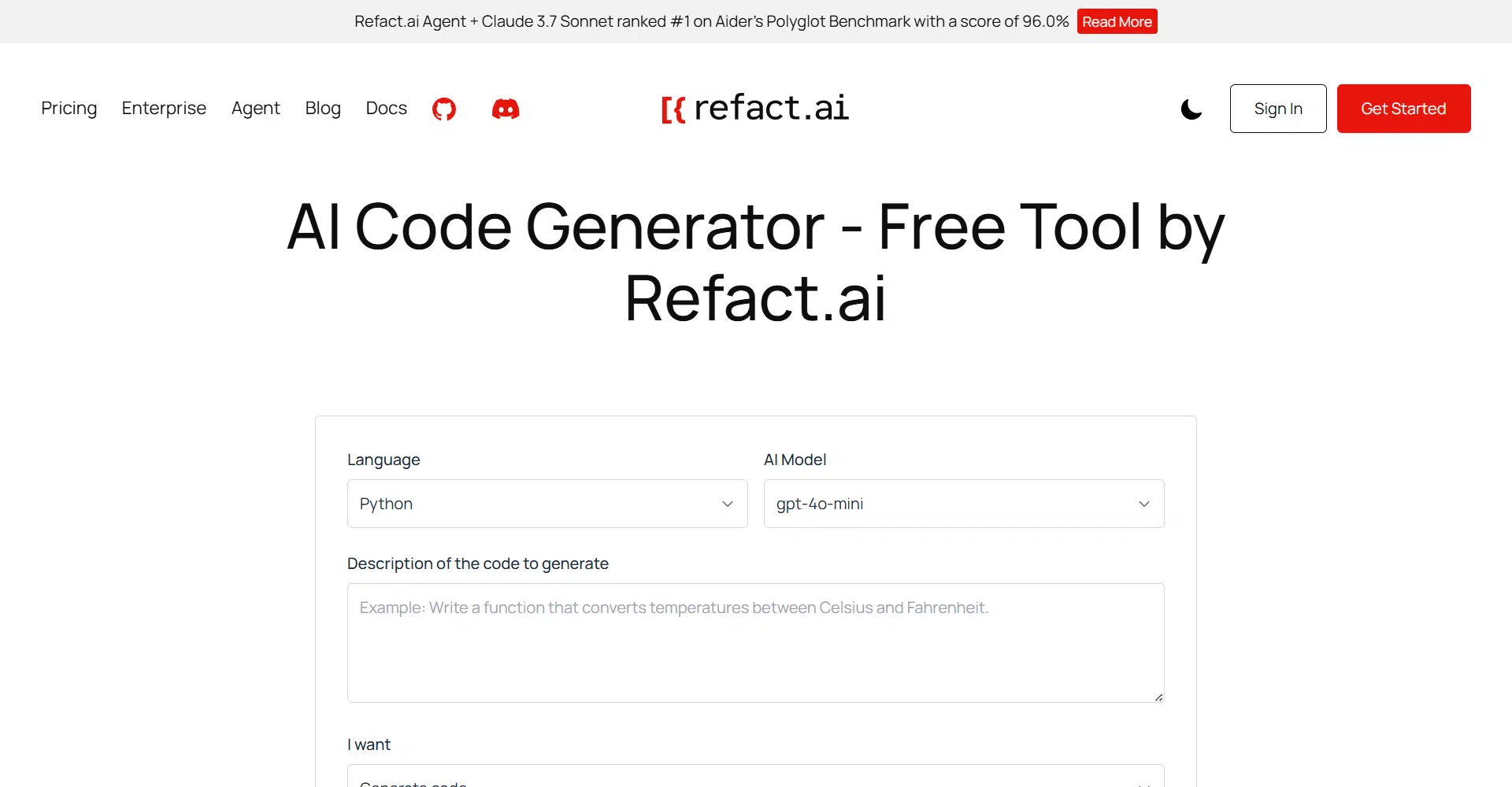 Refact AI is an intuitive and powerful AI code generator designed to help users create, optimize, and understand code across various programming languages. Built by the Refact.ai team, this tool leverages cutting-edge AI models like GPT-4o mini, GPT-4o, and Claude 3.5 Sonnet to deliver precise code solutions in seconds. Whether you’re an experienced developer or just starting out, this tool makes it incredibly easy to generate code by simply selecting a programming language, describing your task, and letting the AI handle the rest.
