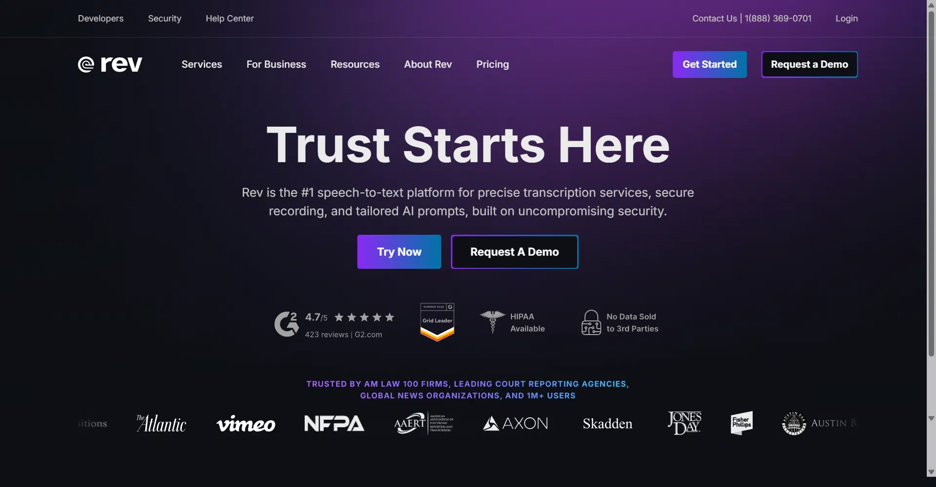 Rev is a powerful and trusted speech-to-text platform that delivers precise transcription, secure recording, and intelligent AI assistance—all backed by industry-grade security. Whether you’re a legal professional, journalist, or business leader, Rev provides tools that help you capture, organize, and analyze spoken content with unmatched accuracy.