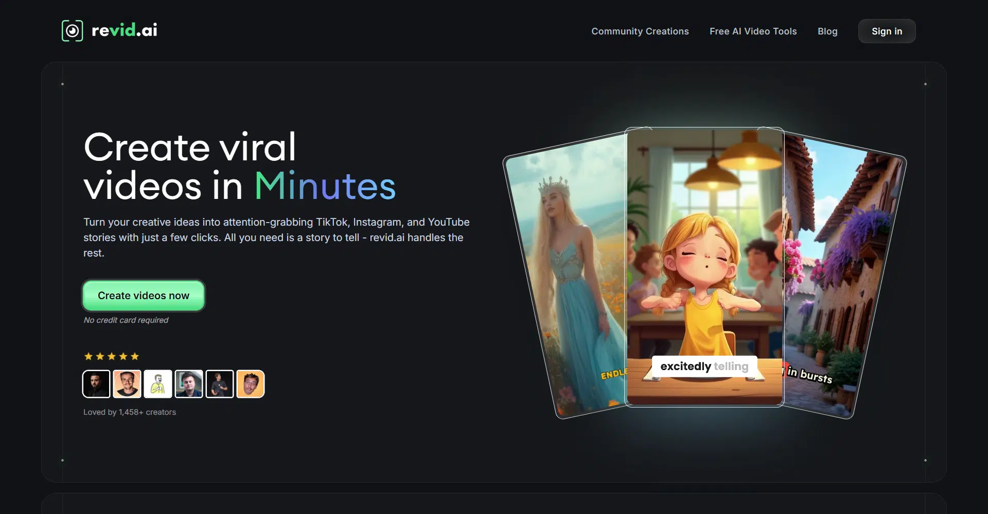 Revid AI provides everything you need to create amazing, viral videos in just minutes. With AI-powered tools, you can effortlessly turn your ideas into polished, attention-grabbing content without needing editing skills or experience.