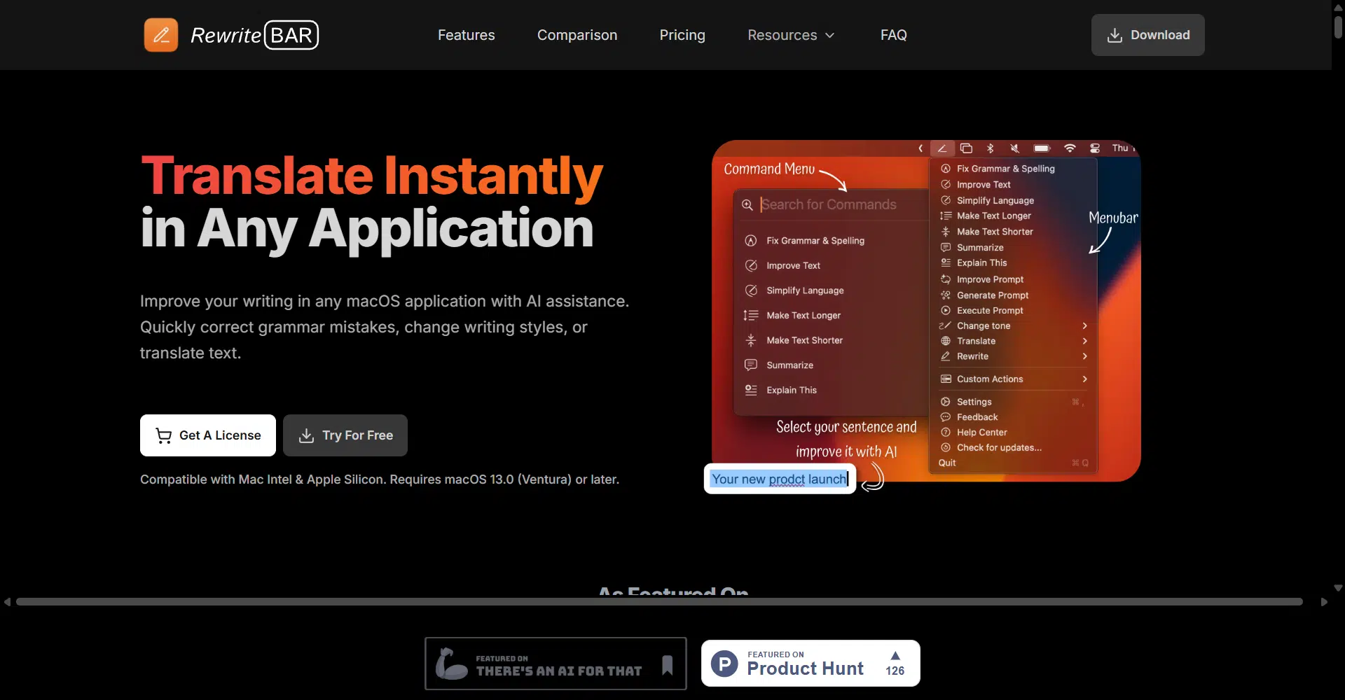 RewriteBar is your personal AI writing assistant built right into your macOS apps. Whether you’re replying to emails, writing social posts, or working on reports, RewriteBar helps you improve writing instantly without leaving your current app. With just a quick keyboard shortcut, you can access a sleek command menu packed with smart tools to make your writing smoother, clearer, and more effective.