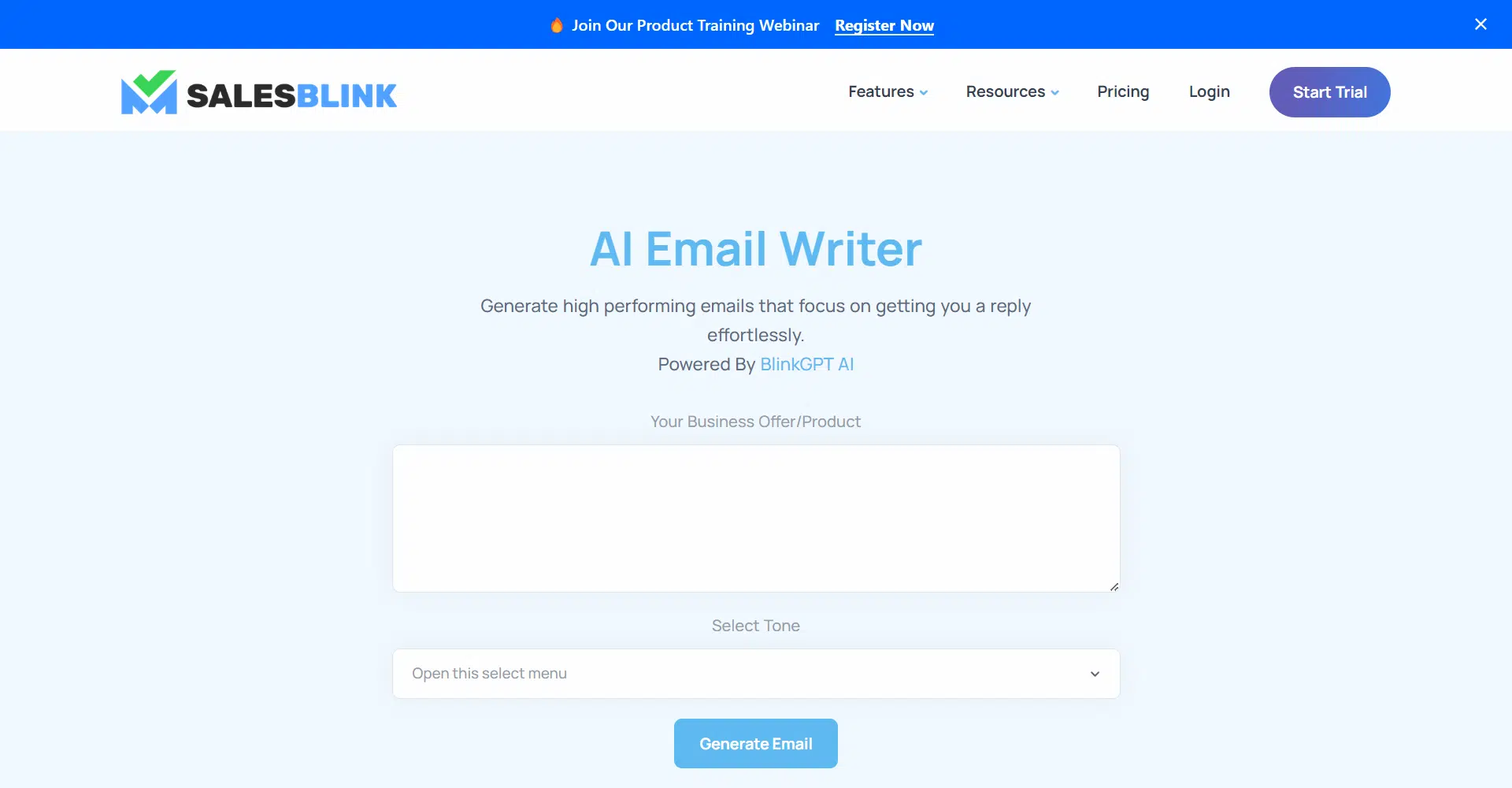 Ready to streamline your email workflow? Try SalesBlink’s AI Email Writer with a 7 day free trial. Send up to 6000 emails, manage unlimited email accounts, and explore additional features to optimize your outreach strategy. Experience firsthand how SalesBlink empowers you to connect more effectively, saving you time and maximizing your email impact. Start your free trial today and elevate your email game with SalesBlink’s AI Email Writer!
