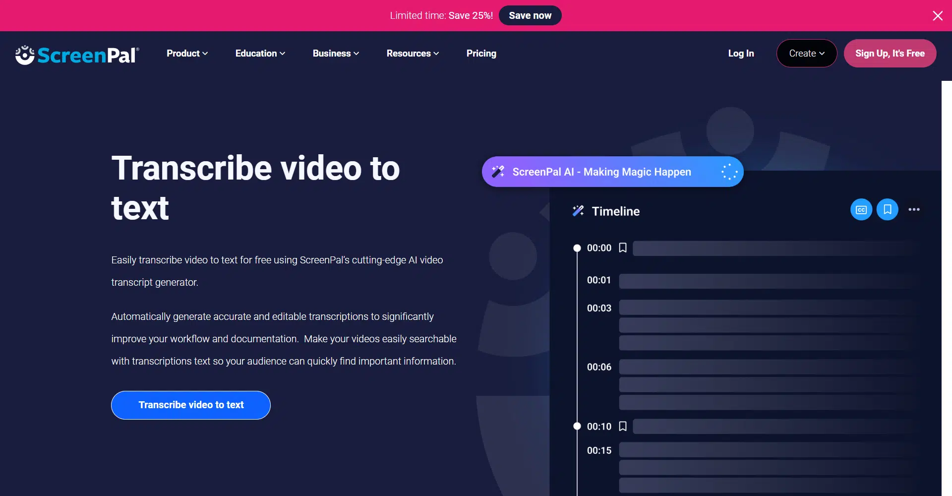 "Turn your videos into text in seconds! ScreenPal's free AI video transcript generator makes transcription easy, fast, and hassle-free."