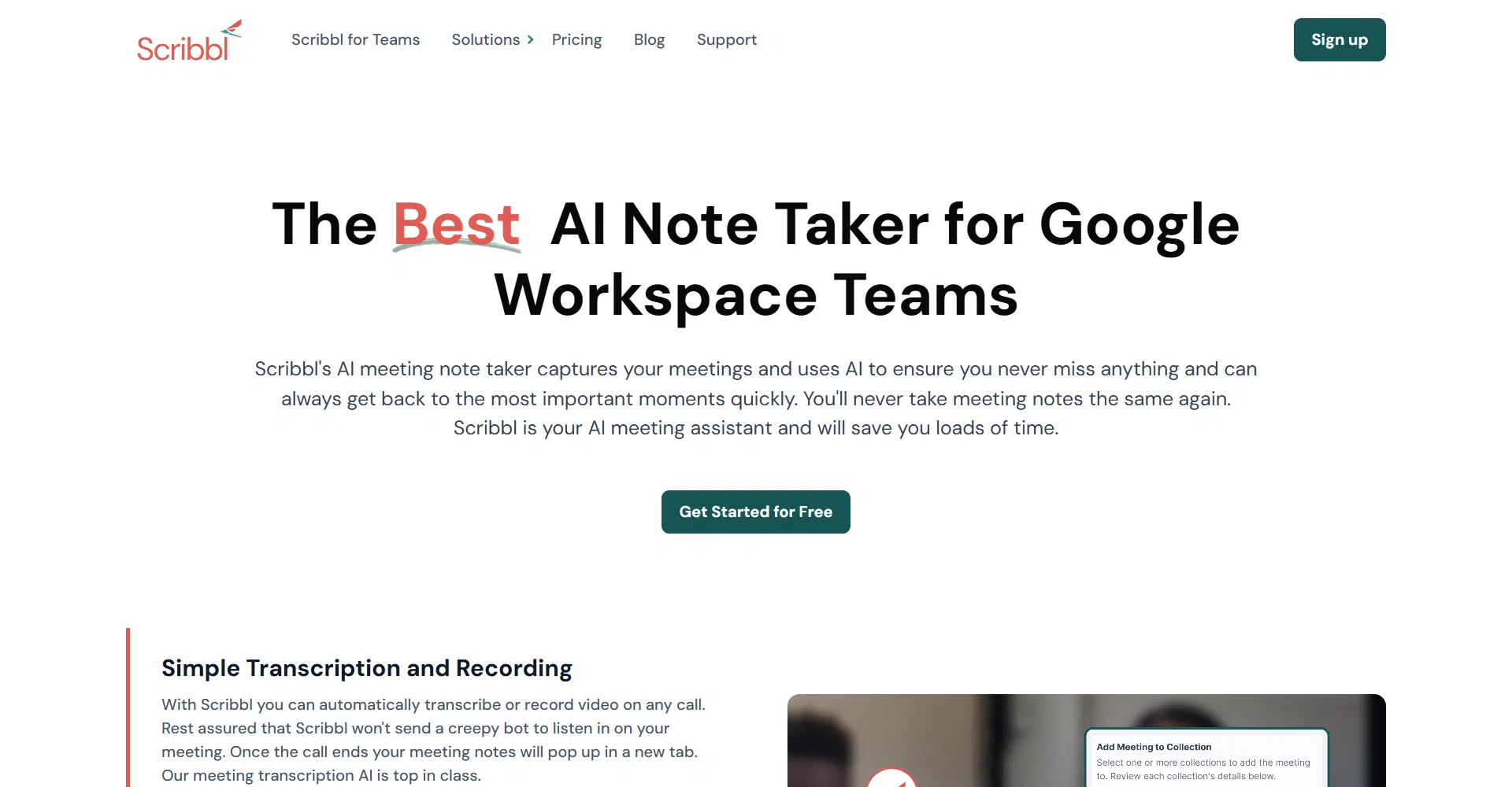 Scribbl is the ultimate AI-powered note taker for Google Workspace teams, designed to capture every detail of your meetings effortlessly. With automated transcription and AI-driven summaries, you’ll never miss an important moment again. Scribbl transforms the way you take notes, making meetings more productive and stress-free.