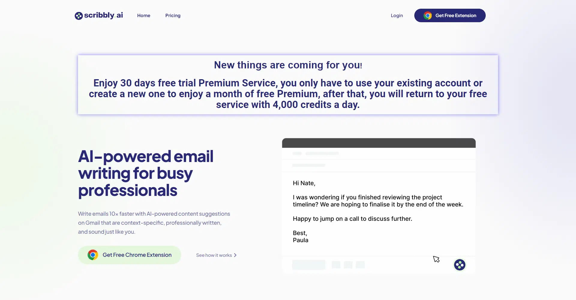 Ready to experience the future of email efficiency? Start with Scribbly AI’s 30-day free trial, offering unlimited access to theitransformative capabilities. After the trial period, continue optimizing your workflow with 4000 credits per month. Whether you’re a seasoned professional or just starting, Scribbly AI is your partner in achieving peak productivity and enhancing communication effectiveness.