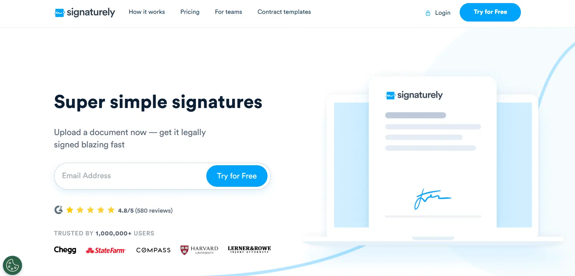 Signaturely is an electronic signature platform that helps users send, sign, and manage documents online without the need for printing or scanning. They simplify the signing process by allowing users to upload documents, add signature fields, and send them to recipients, who can sign from any device. The platform focuses on speed and ease of use, making it suitable for contracts, agreements, and business paperwork.