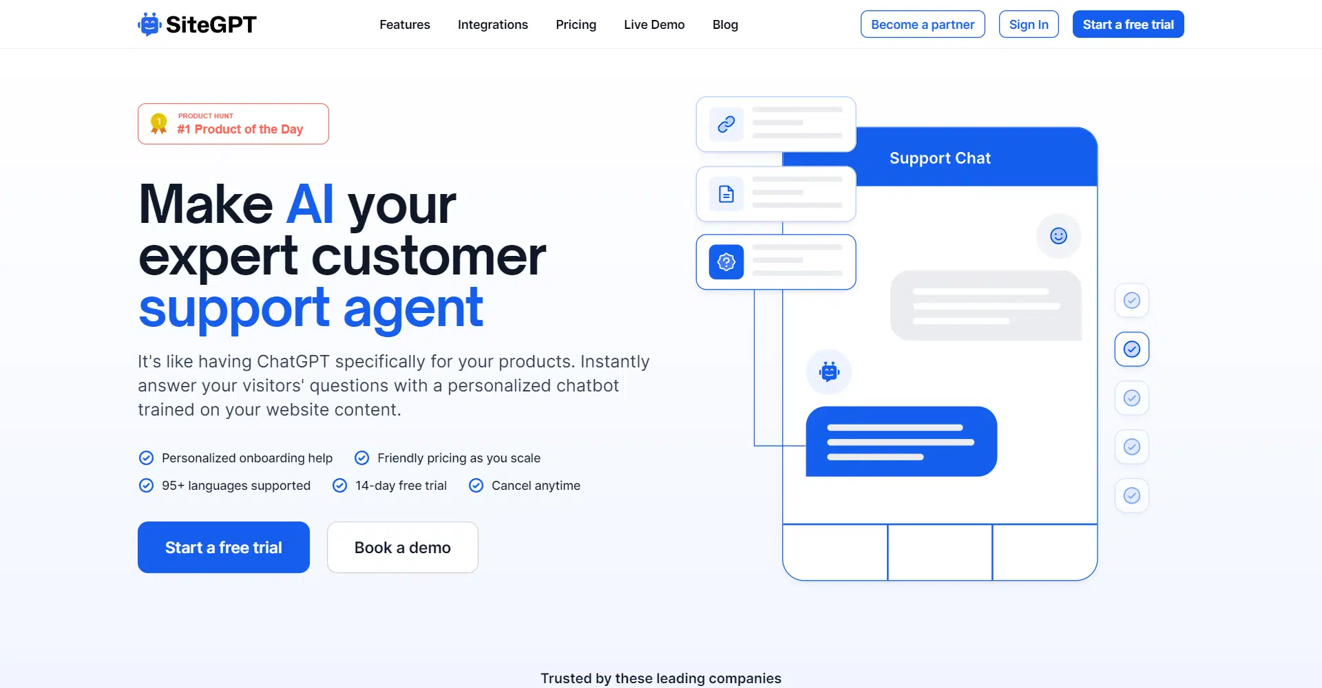 Step into the future of customer support with SiteGPT! They offer a cutting-edge solution that revolutionizes how businesses interact with their customers. With SiteGPT, companies can have a tireless expert at their fingertips, ready to provide instant assistance 24/7.