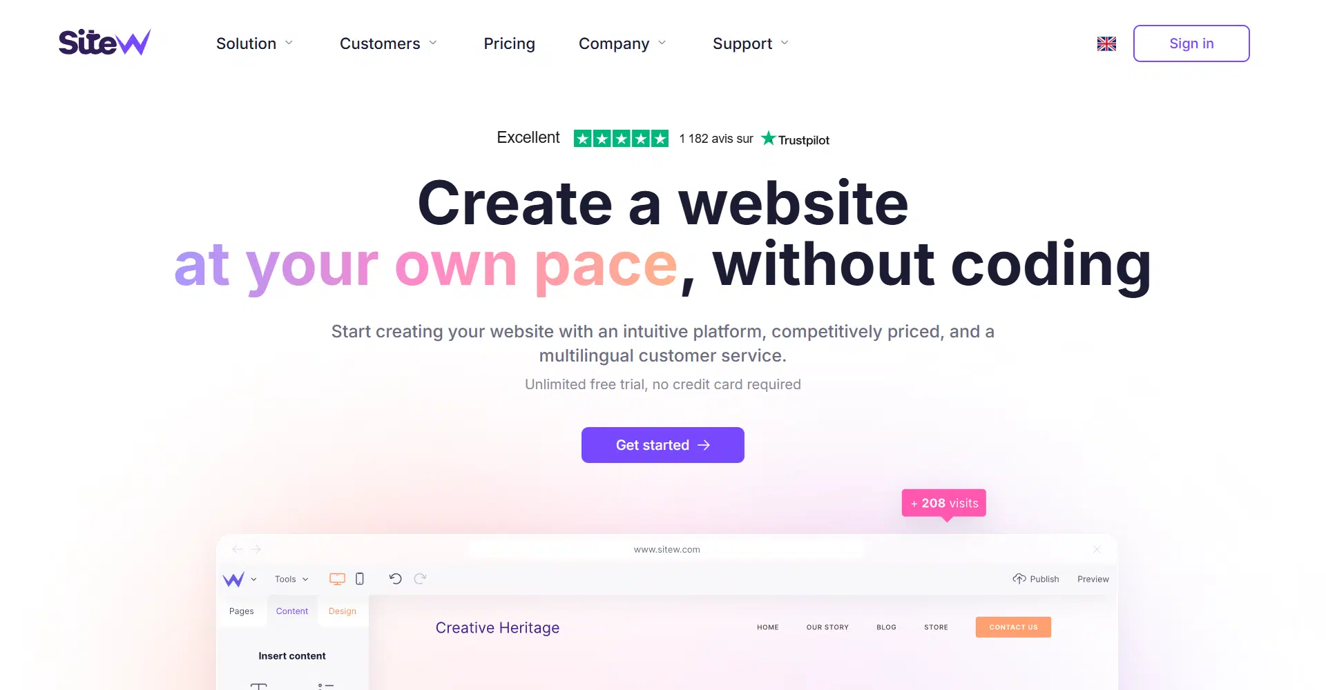 Building your site is quick and flexible with customizable templates. SiteW ensures your website is responsive and secure, adapting to different screens seamlessly. You can also launch an online store with 0% commission rates, taking advantage of features like click and collect and SEO optimization.