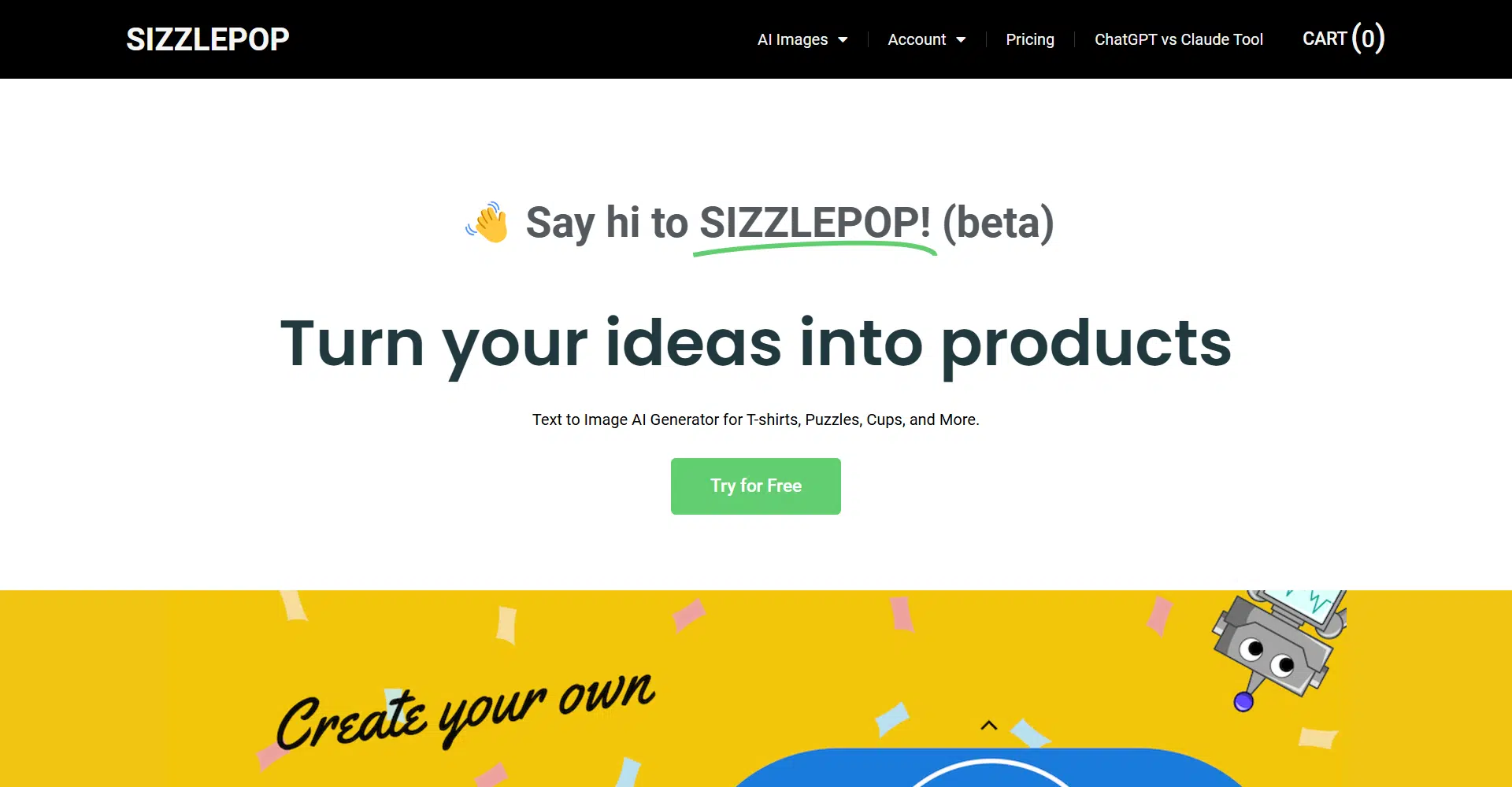 Introducing SizzlePop, a fun and easy way to turn your creative ideas into custom products. Whether you want a unique T-shirt, a personalized puzzle, or a one-of-a-kind phone case, SizzlePop’s AI-powered platform makes it simple to design and order your custom creations. All you have to do is enter a short description of the design you want, and the AI generates a stunning image based on your prompt.